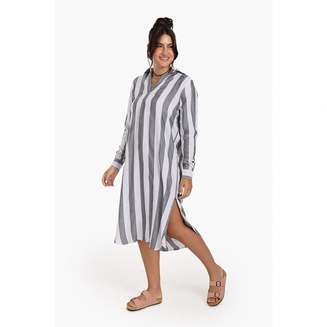 كلو فستان مخطط متوسط الطول بياقة حريمي
