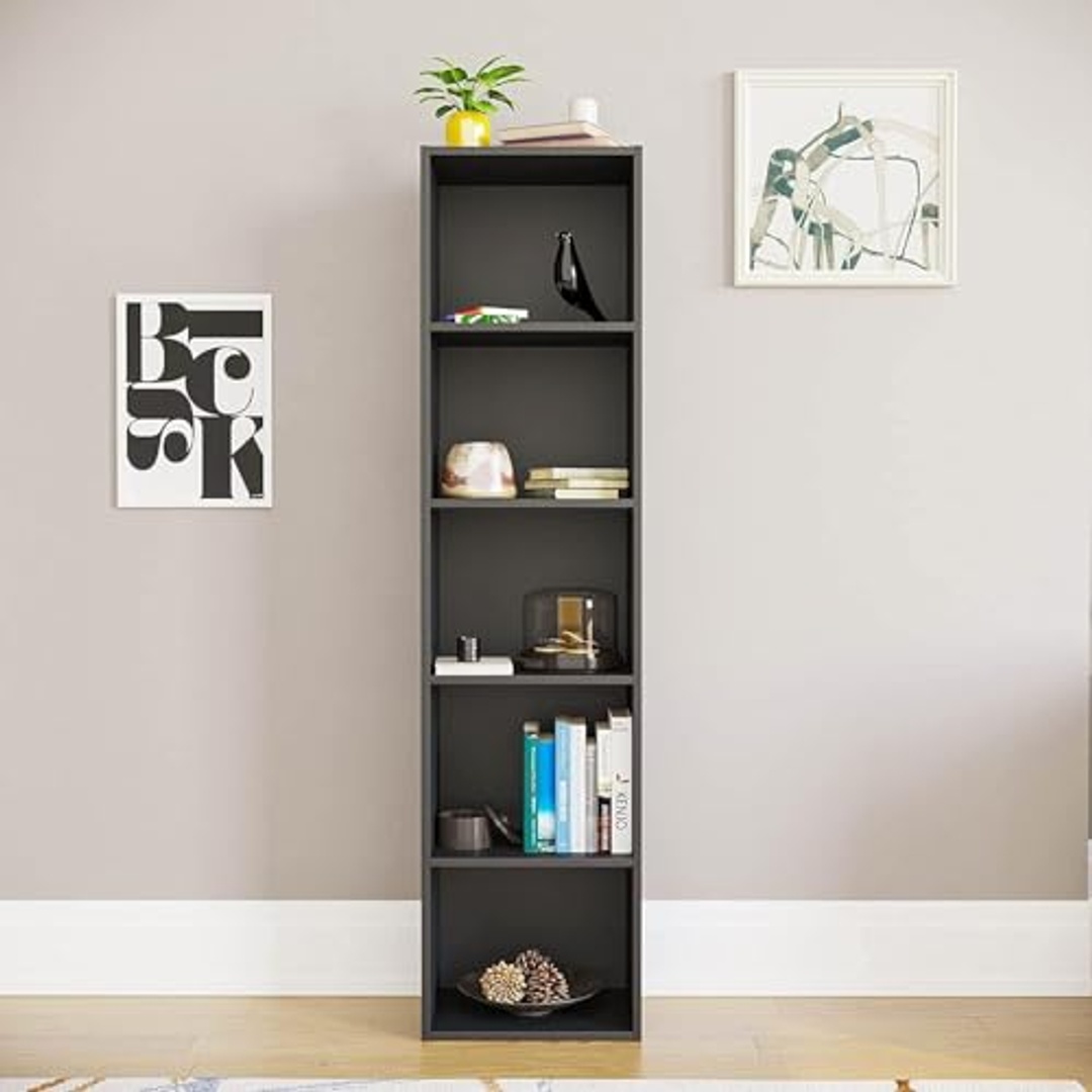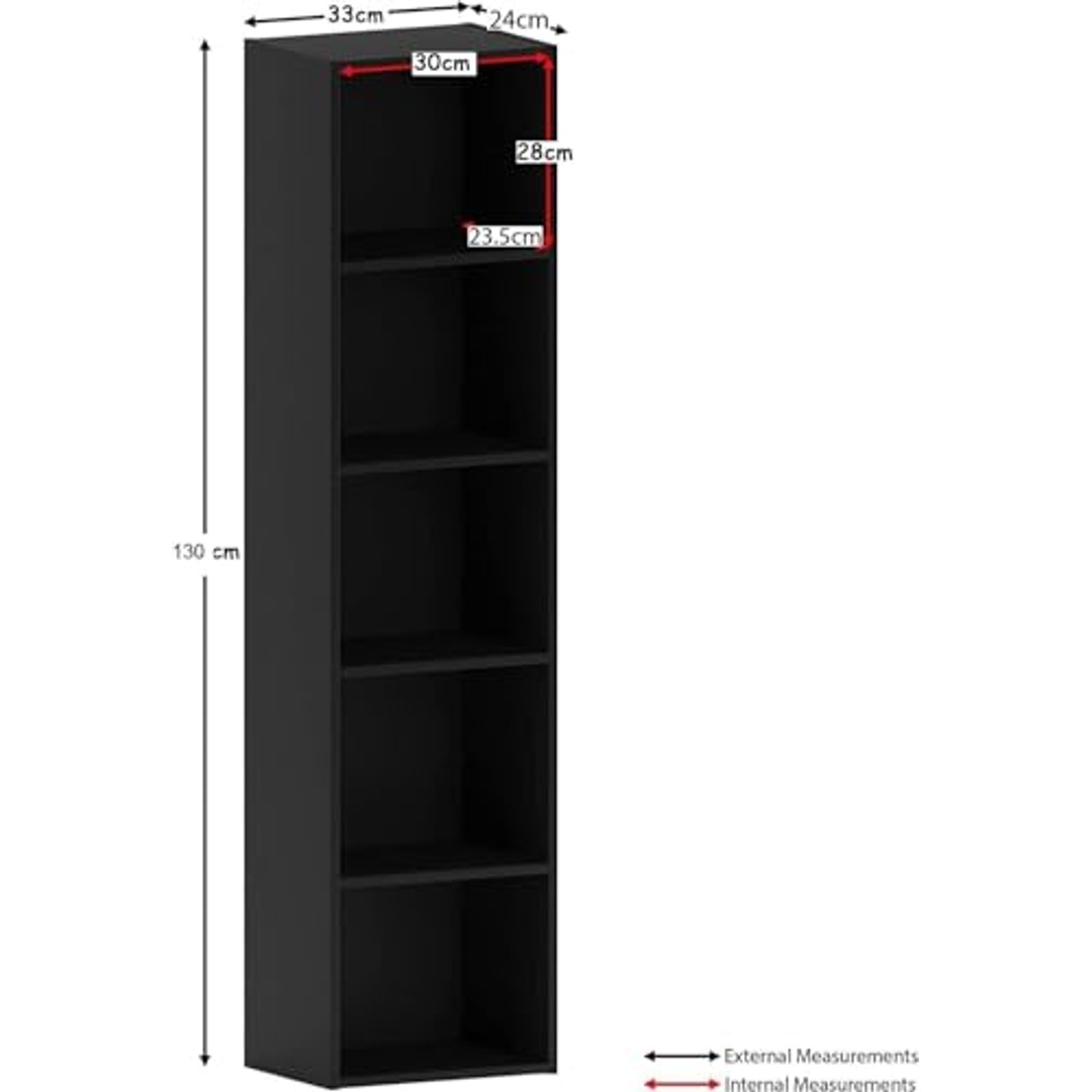 مكتبة خشب بـ 5 رفوف - 130×33×24 سم - أسود