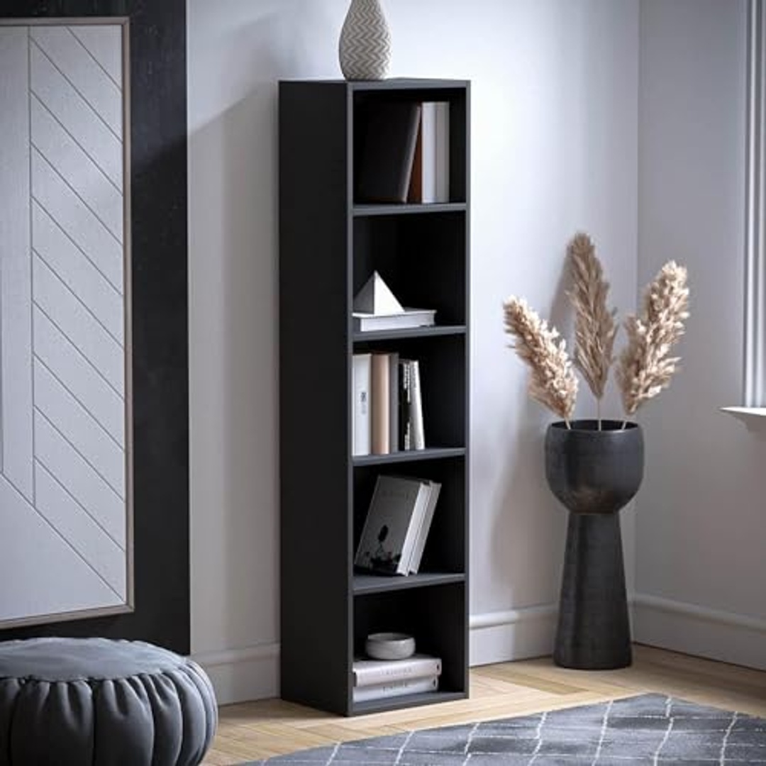 ارتقِ بمساحتك مع هذا المكتبة الأنيقة ذات الخمس مستويات، المصممة بارتفاع 130 سم، وعرض 33 سم، وعمق 24 سم. يتناغم التشطيب الأسود العصري مع أي ديكور داخلي، بينما يوفر حلول تخزين عملية. توفر الأرفف الخمسة الواسعة مساحة كافية للكتب، العناصر الزخرفية، أو صناديق التخزين، مع أبعاد داخلية تبلغ 30 سم عرض و28 سم ارتفاع بين الأرفف. العمق المدروس البالغ 23.5 سم يستوعب الكتب والعناصر المعروضة ذات الحجم القياسي، مع الحفاظ على شكل رفيع لا يثقل الغرفة. هذه الوحدة المتعددة الاستخدامات تعمل بشكل رائع كرف مكتبة مستقل أو يمكن دمجها مع وحدات متعددة لإنشاء جدار تخزين مميز. تضفي الخطوط النظيفة والتصميم الحداثي لمسة مثالية على المنازل العصرية، المكاتب، أو مساحات الدراسة. سواء كنت تنظم مجموعة كتبك، تعرّض عناصر ثمينة، أو تخلق حلاً تخزينياً عملياً، فإن هذه المكتبة تجمع بين الأناقة والعملية.