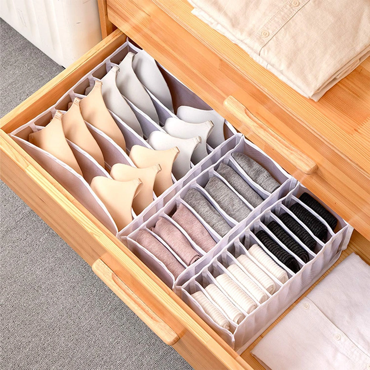 - تطبيق واسع: مناسبة لتخزين الملابس الداخلية والجوارب