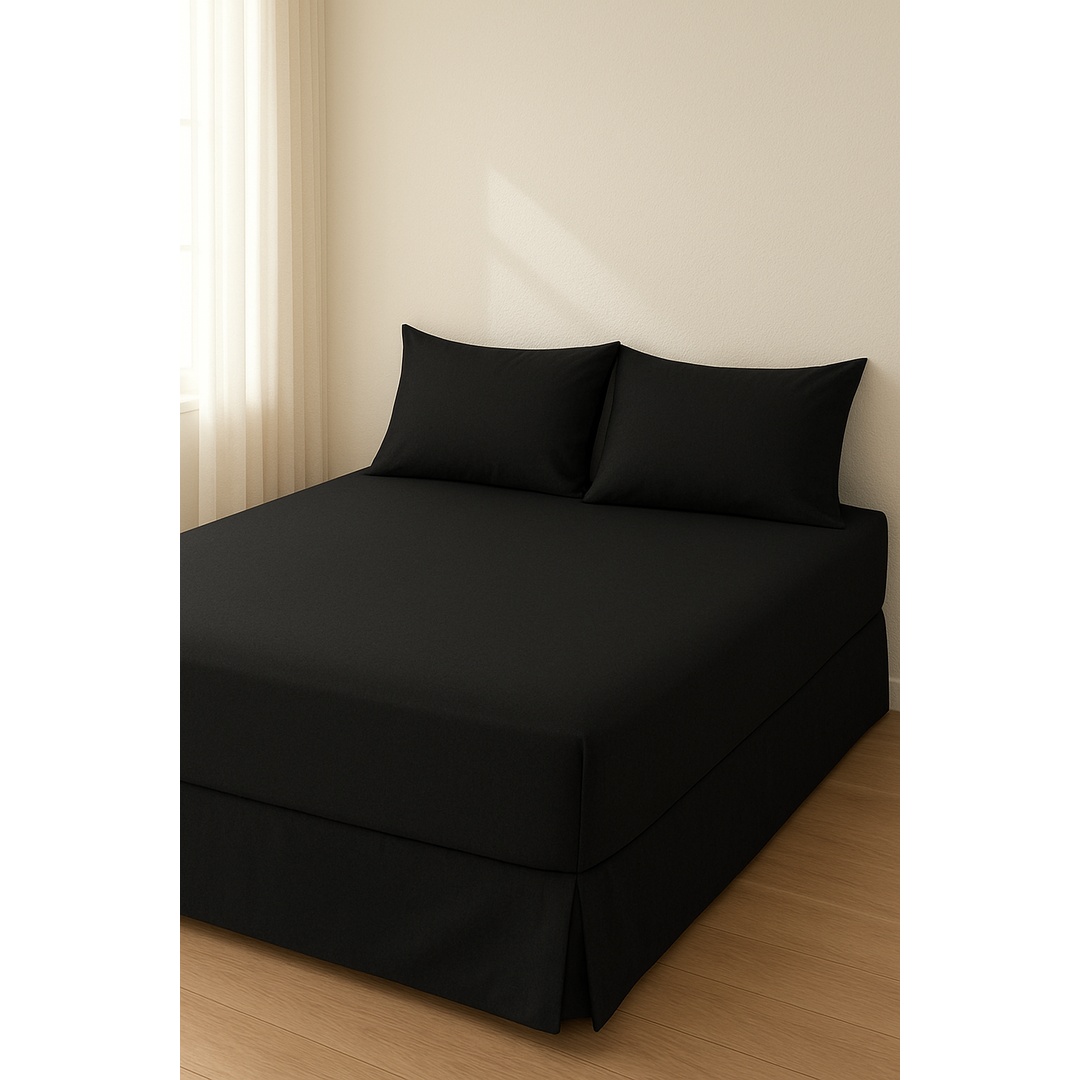 استمتع بإضفاء لمسة من الأناقة والراحة على غرفة نومك مع طقم ملاية سرير بأستك من يارلن، الذي يتضمن ملاية بأستك واثنين من أكياس المخدات. يأتي هذا الطقم بلون أسود أنيق، ويناسب سريرًا بعرض 180 سم، حيث تتميز الملاية بأبعاد 200×180×30 سم لتضمن لك تغطية مثالية. الأكياس بحجم 50×70 سم توفر لك تجربة نوم مريحة وممتعة. تم تصنيع هذا الطقم من خامة قطن مخلوط عالي الجودة، مما يضمن لك نعومة وراحة تدوم طويلاً، بينما الألوان الثابتة تحافظ على جاذبيتها حتى بعد العديد من الغسلات. اجعل لياليك أكثر راحة مع طقم يارلن الفاخر.