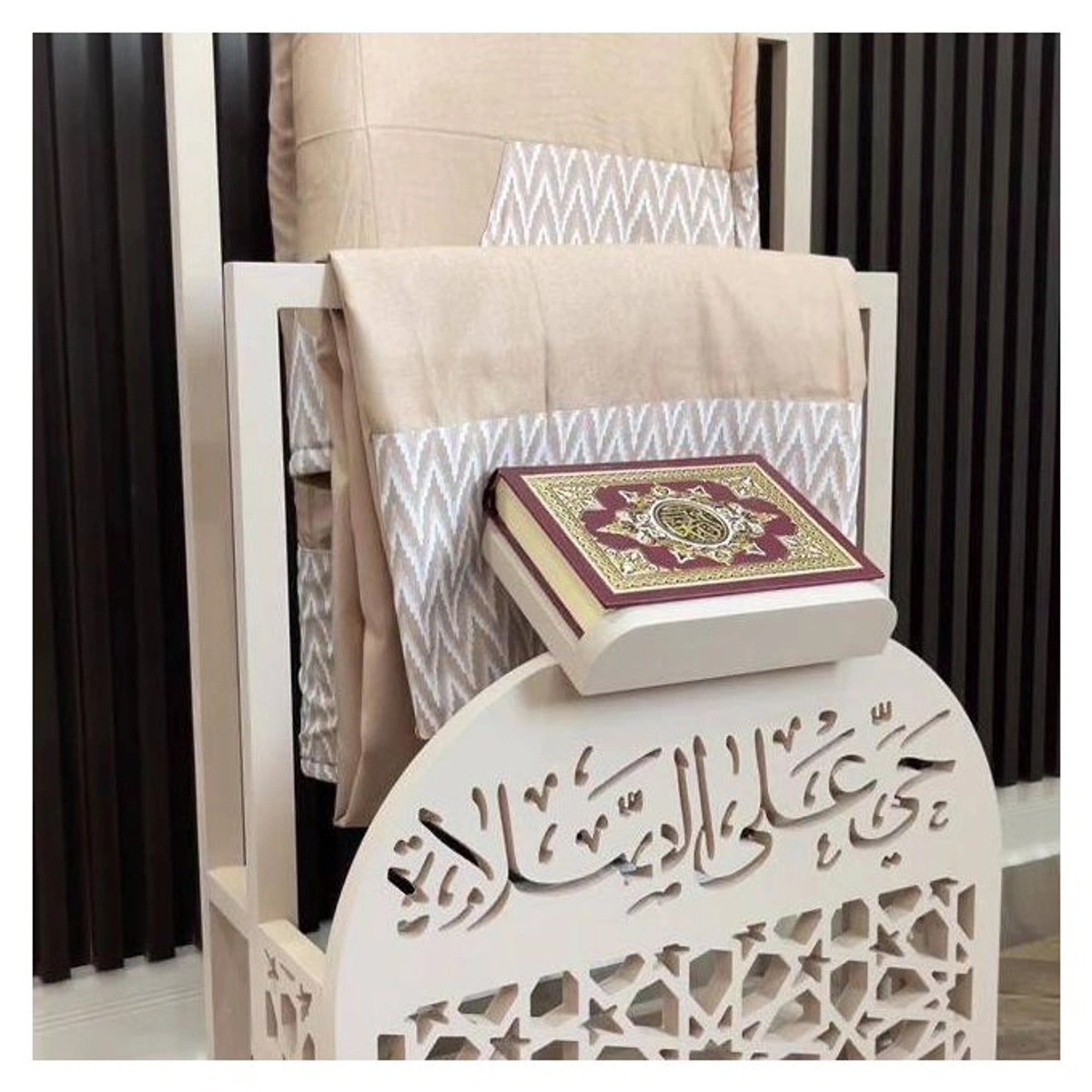 عايز مكان مميز ومنظم للمصحف وسجادة الصلاة في بيتك؟ ستاند الصلاة الخشبي ده هيحول أي ركن عندك لركن هادي وروحاني، بتصميمه الإسلامي الأنيق ولونه الأبيض الجذاب!