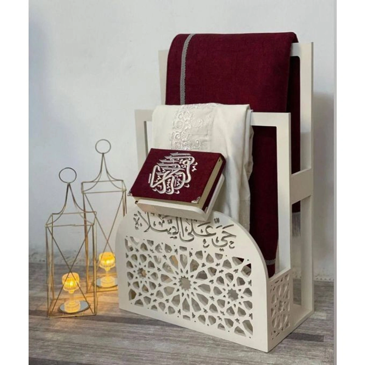 - التنظيم: يساعد على تنظيم المصحف وسجادة الصلاة في مكان واحد مخصص