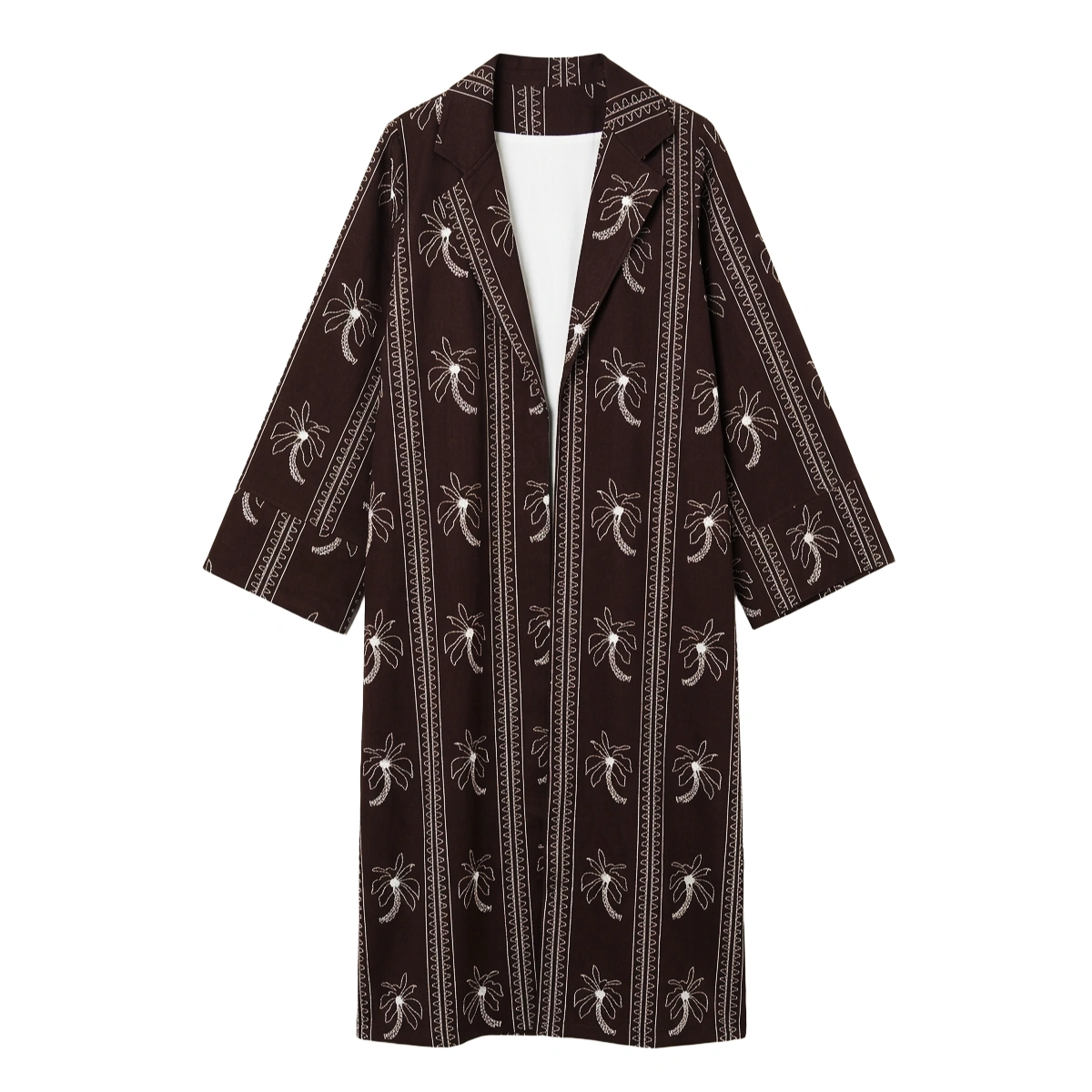 أضفي لمسة استوائية أنيقة لإطلالتك مع كيمونو كلو بنقشة النخيل. يتميز بتصميم مريح وقصة ماكسي، مثالي للطبقات ويناسب كل إطلالاتك اليومية.