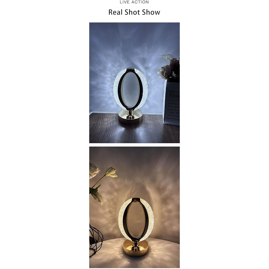 أضف لمسة ساحرة إلى منزلك مع المصباح الليلي الكريستالي على شكل حلقة. هذا المصباح الأنيق يجمع بين التصميم العصري والكلاسيكي، حيث يتميز بهيكل كريستالي فاخر على شكل حلقة ينشر إضاءة دافئة ومريحة. مثالي لغرف النوم وغرف المعيشة، هذا المصباح الليلي الكريستالي يوفر إضاءة ليلية هادئة أو كإضاءة ديكورية أنيقة تضفي جمالاً ورونقاً على أي مساحة. احصل على مصباحك الليلي الكريستالي اليوم واستمتع بأجواء ساحرة