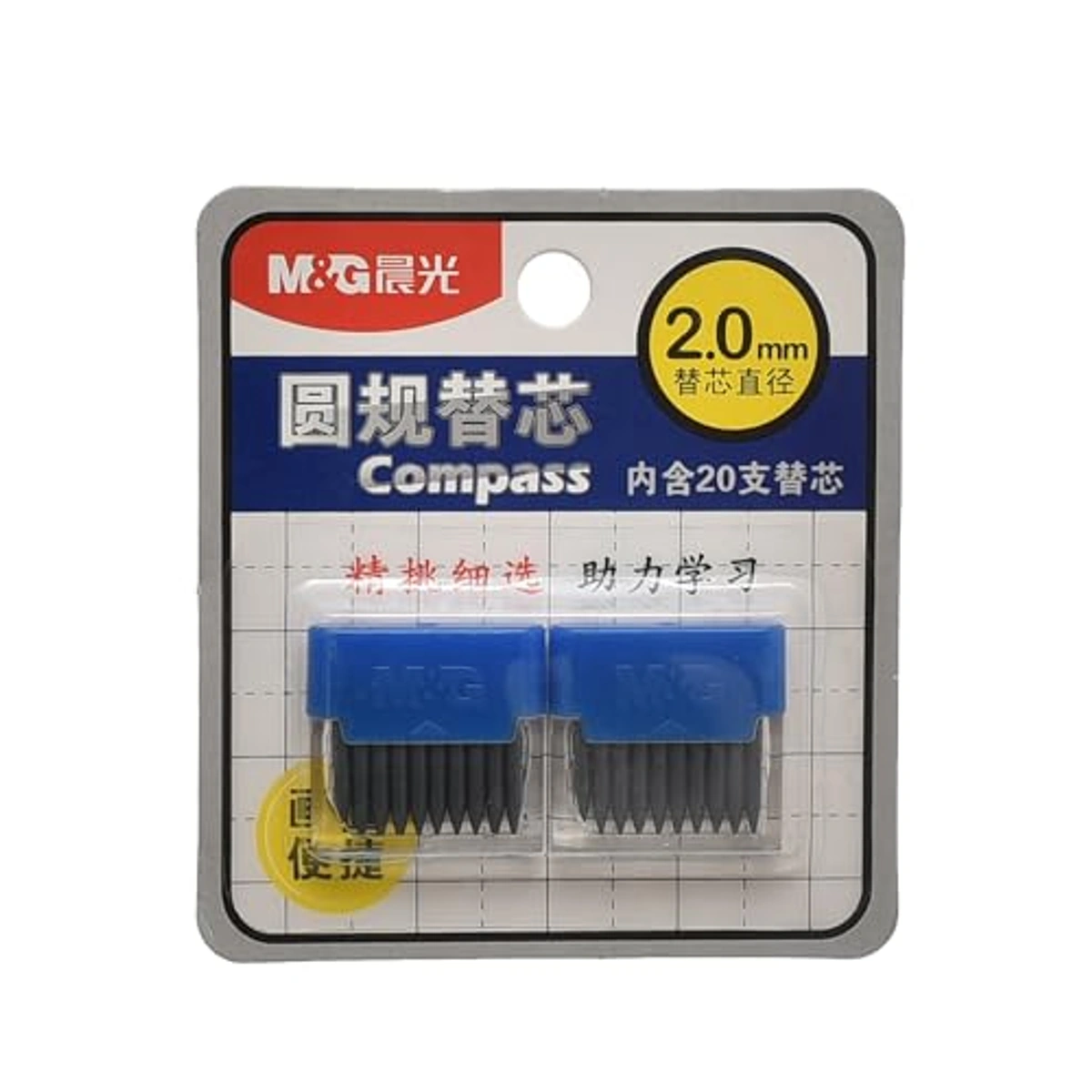 M&G سنون برجل جرافيت 2 مم، مثالية للرسم الهندسي الدقيق بفضل جودتها العالية وعددها الوفير. استمتع برسومات واضحة واحترافية بدون قلق.
