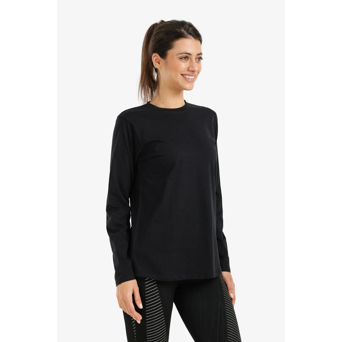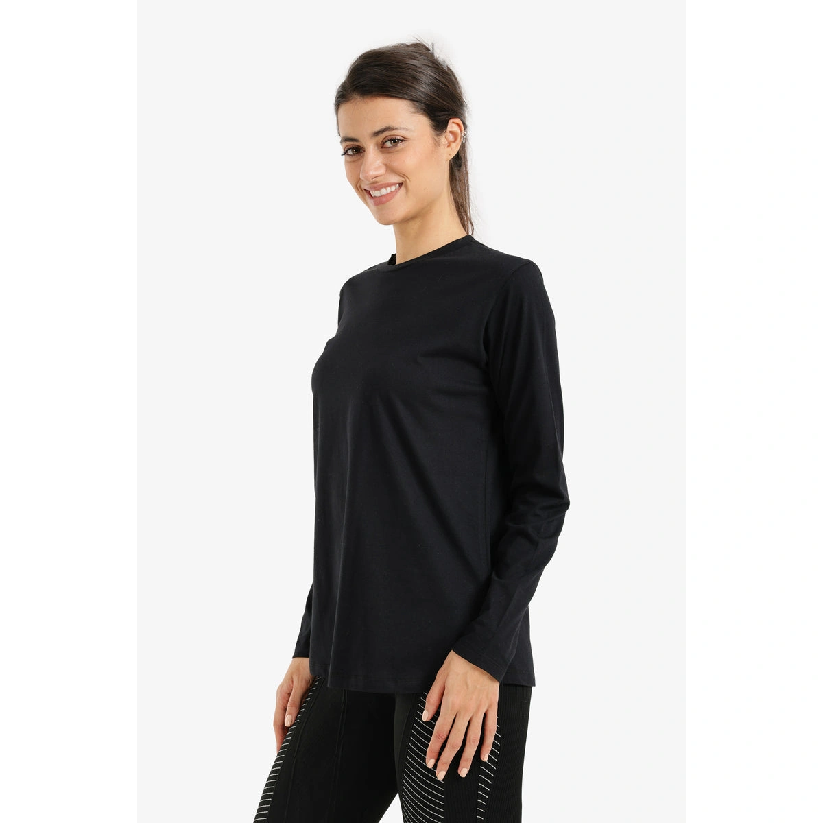 تيشيرت قطن بقصة مريحة وخامة ناعمة. لون سادة، رقبة دائرية، أكمام طويلة وفتحة جانبية تضيف لمسة عصرية. مثالي للبيت أو الخروجات الخفيفة.