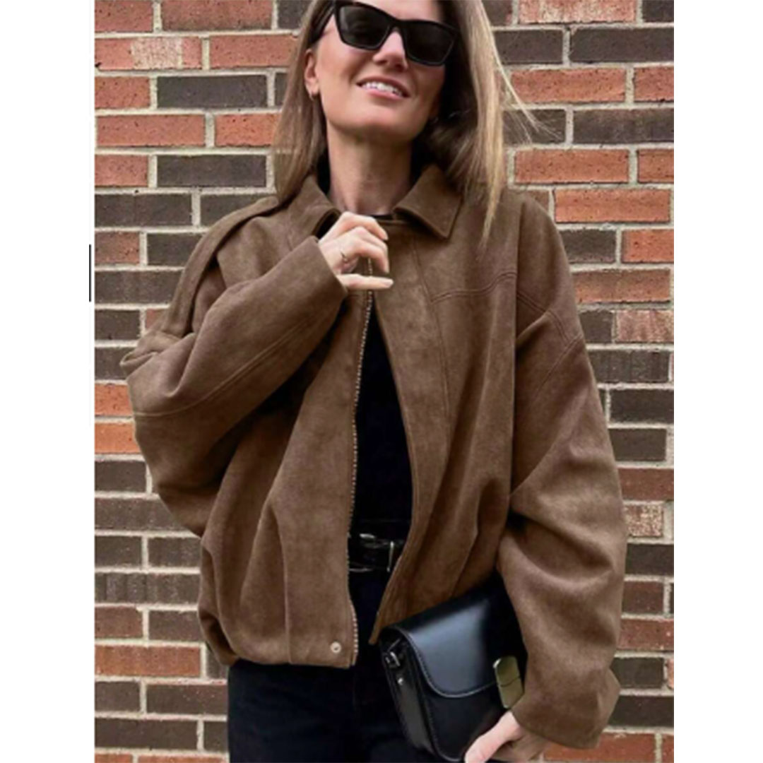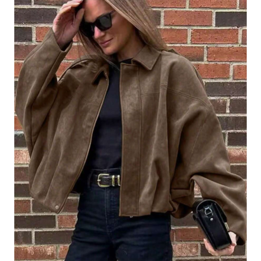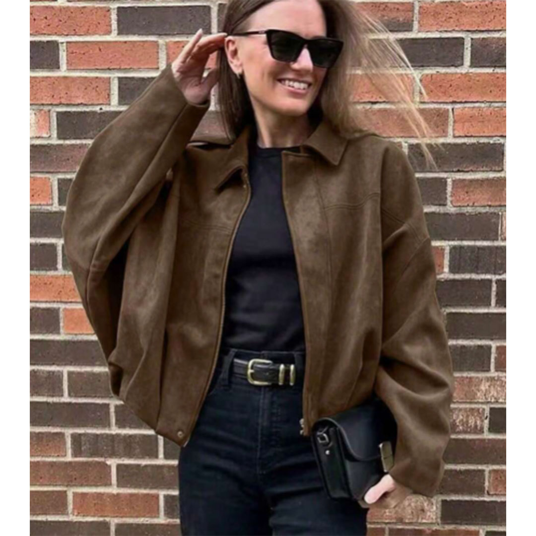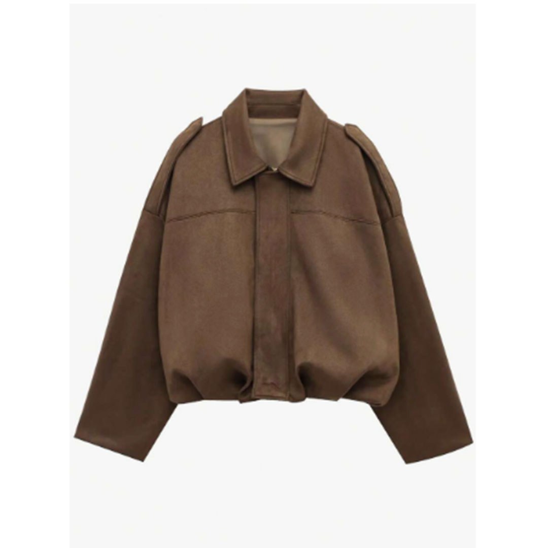 جاكيت شمواه مبطن بفرو داخلي ناعم يدي إحساس دفء واضح في الجو البارد، اللون البني شيك وسهل يتنسق مع جينز أو بنطلون جلد، تصميم واسع مريح بياقة كلاسيك وأزرار أمامية يدي شكل راقي ومناسب للبس اليومي والخروجات الشتوية.