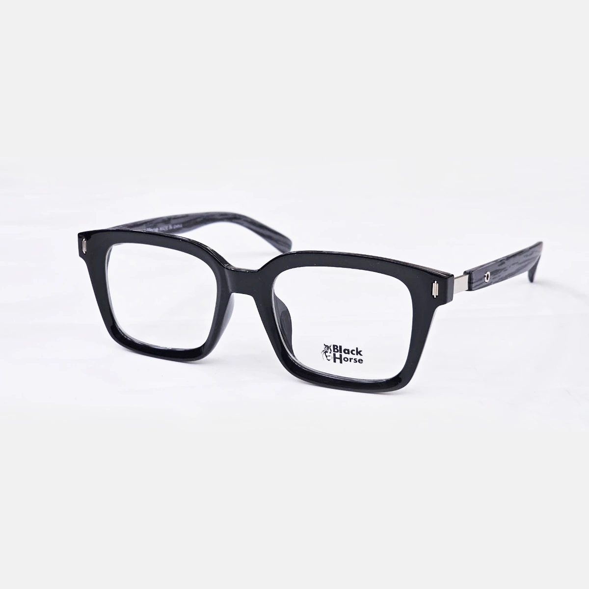 نظارة طبية رجالي بإطار ونقشة خشب بلمسة خشبية - أسود/رما...