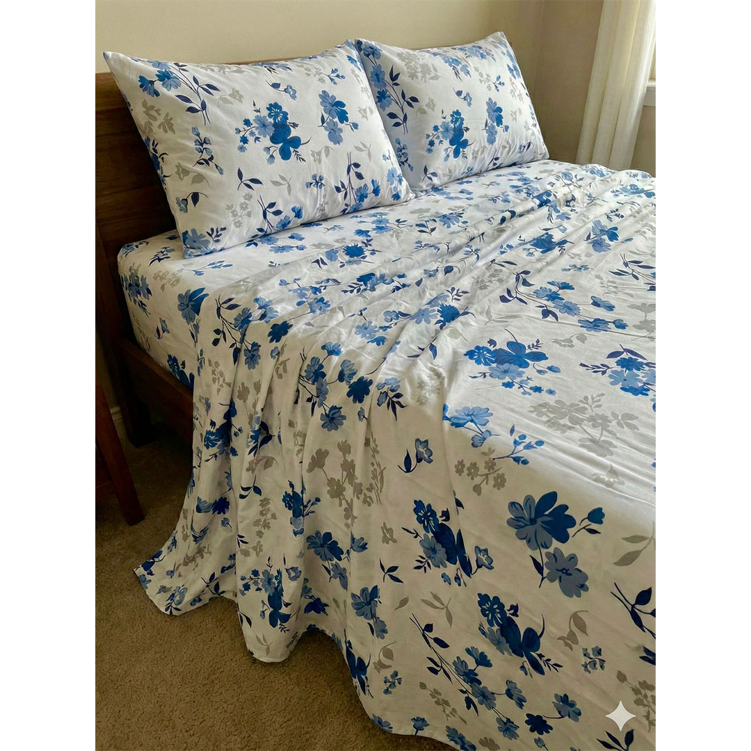 يارلن طقم ملاية عادية + 2 كيس مخدة صغيرة - بلو فلورال -...