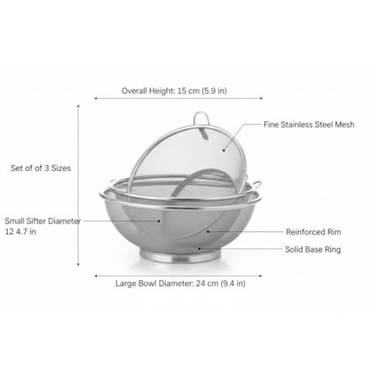 تقدم لك مجموعتنا المميزة من مصافي الطعام المصنوعة من الفولاذ المقاوم للصدأ، والتي تتكون من 3 قطع متعددة الاستخدامات لتلبية جميع احتياجاتك في المطبخ. تتميز هذه المصفاة بنمطها الأنيق من الستانلس ستيل، مما يجعلها ليست فقط عملية بل أيضاً تضيف لمسة جمالية لمطبخك. صُممت هذه المصفاة لتصفية الطعام والسوائل بكفاءة عالية، مما يساعدك في تحضير وجباتك بسهولة وسرعة. سواء كنت تقوم بتصفية المعكرونة، أو غسل الخضروات، أو حتى تصفية السوائل، فإن هذه المجموعة ستكون الخيار المثالي لكل ربة منزل تبحث عن الجودة والراحة في المطبخ. لا تفوت الفرصة، وامتلك هذه الأدوات العملية التي ستجعل من تجربة الطهي لديك أكثر سهولة واحترافية.