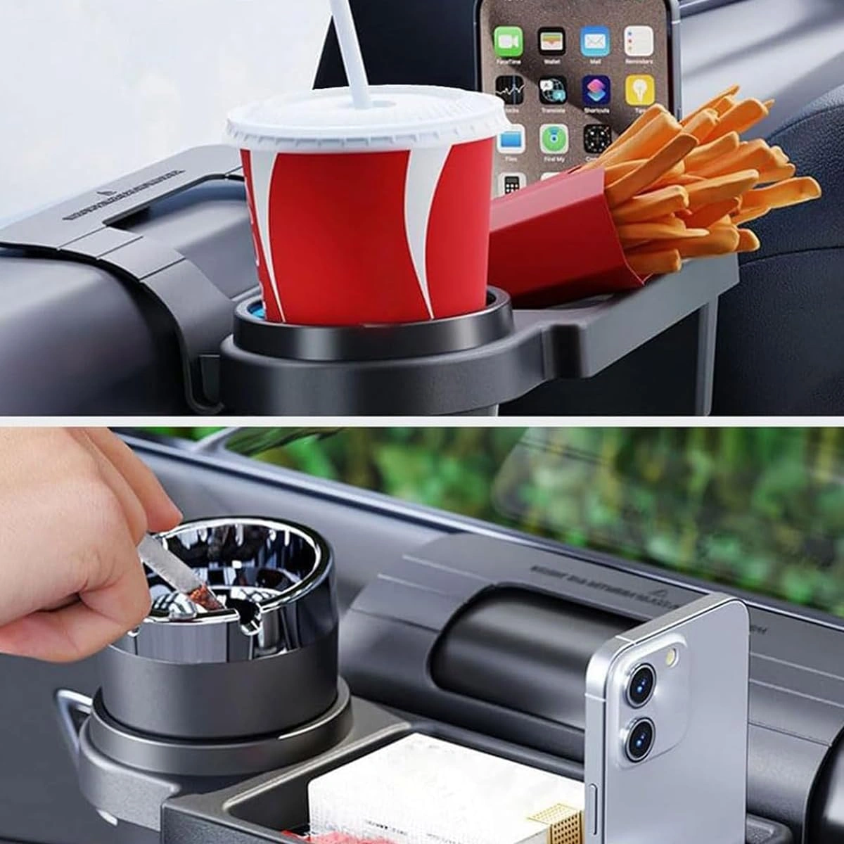 اكتشف رف التخزين وحامل الأكواب المعلق على جانب باب السيارة، الحل المثالي لتنظيم سيارتك بأسلوب أنيق وعملي. بلونه الأسود الجذاب، يساعدك هذا المنظم على الحفاظ على سيارتك مرتبة ومنظمة، مما يضمن لك استخدام المساحة المحدودة بشكل مثالي. تم تصميمه ليعمل كصندوق تخزين معلق، بالإضافة إلى كونه حاملًا للهاتف الخلوي وحاملًا لأكواب المياه، مما يجعله خيارًا مثاليًا للرحلات الطويلة أو التنقل اليومي. يمكنك توصيل المنظم بسهولة بنافذة سيارتك، مما يتيح لك الوصول السريع إلى العناصر الأساسية أثناء القيادة، مما يجعل تجربتك أكثر راحة وأمانًا. اجعل سيارتك نموذجًا للترتيب والراحة مع هذا المنتج المبتكر!