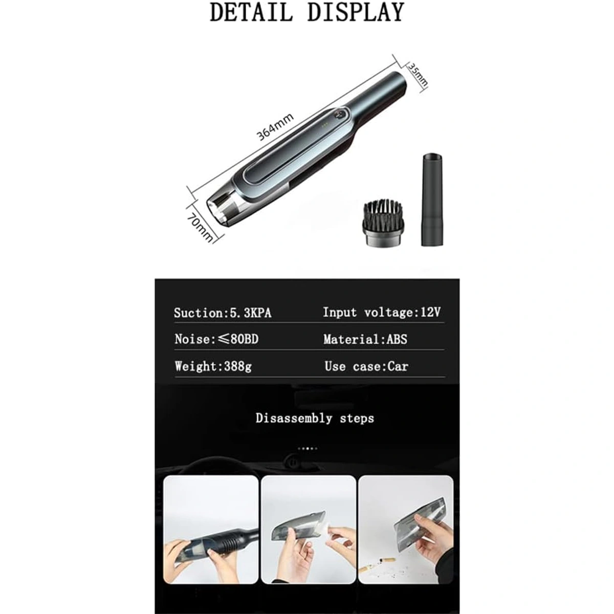- نوع المنتج: مكنسة كهرباء محمولة للسيارة