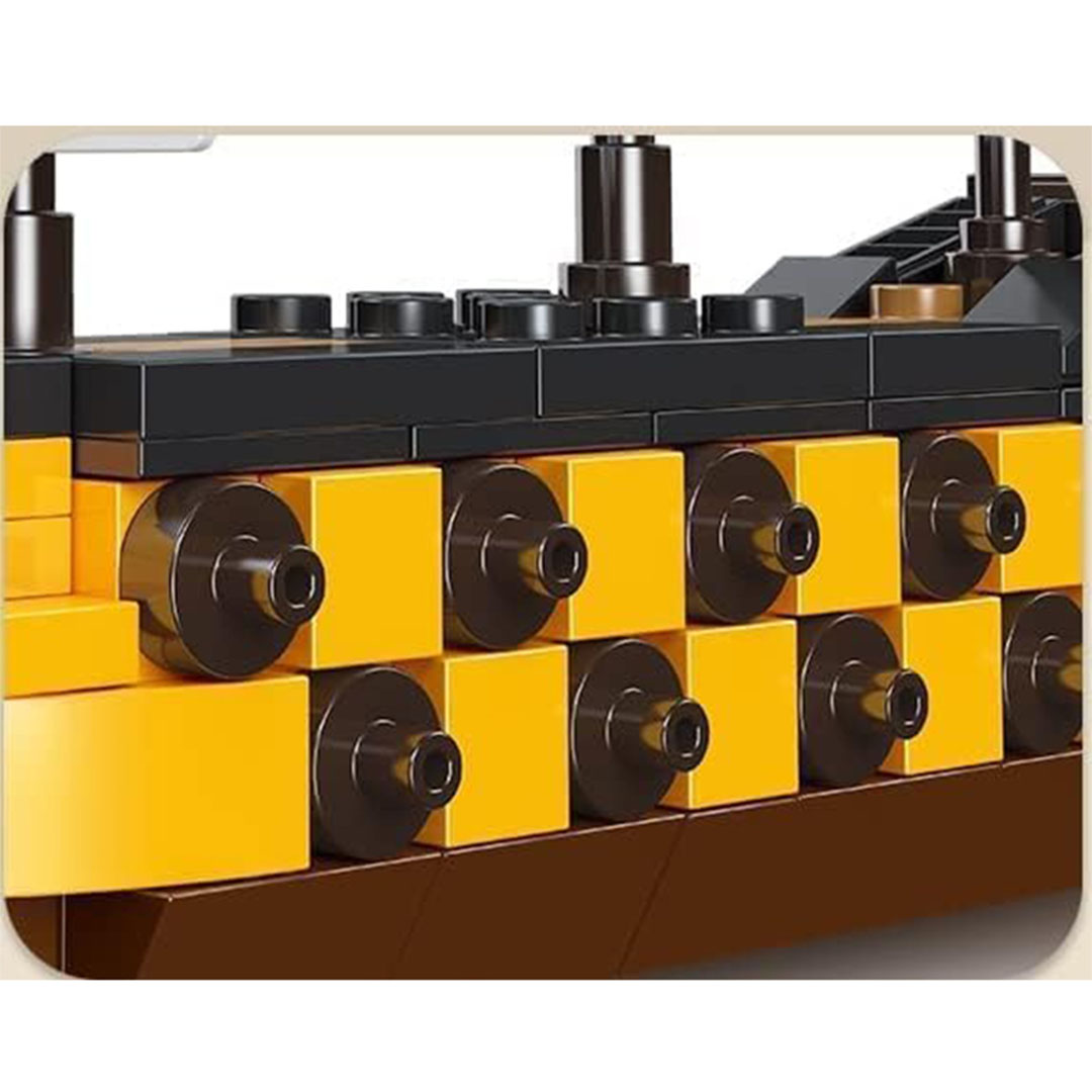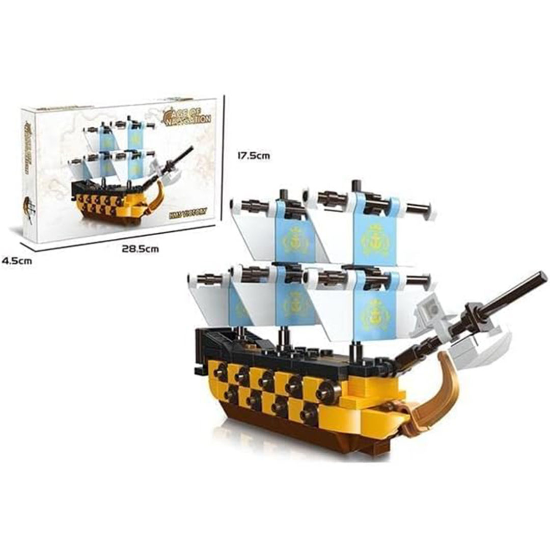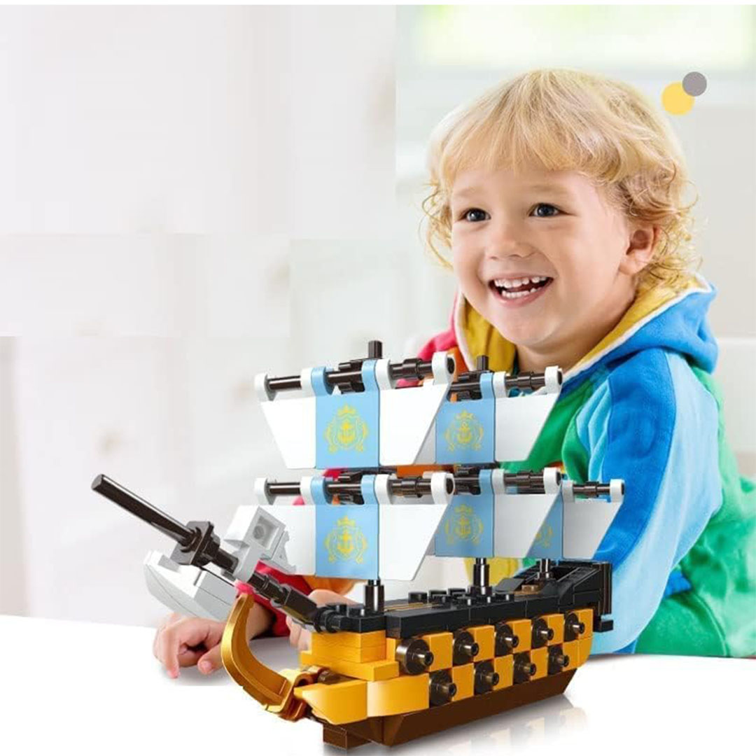 • مجموعة قطع لبناء نموذج سفينة مفصل، تعزز خيال الطفل ومهاراته الحركية.