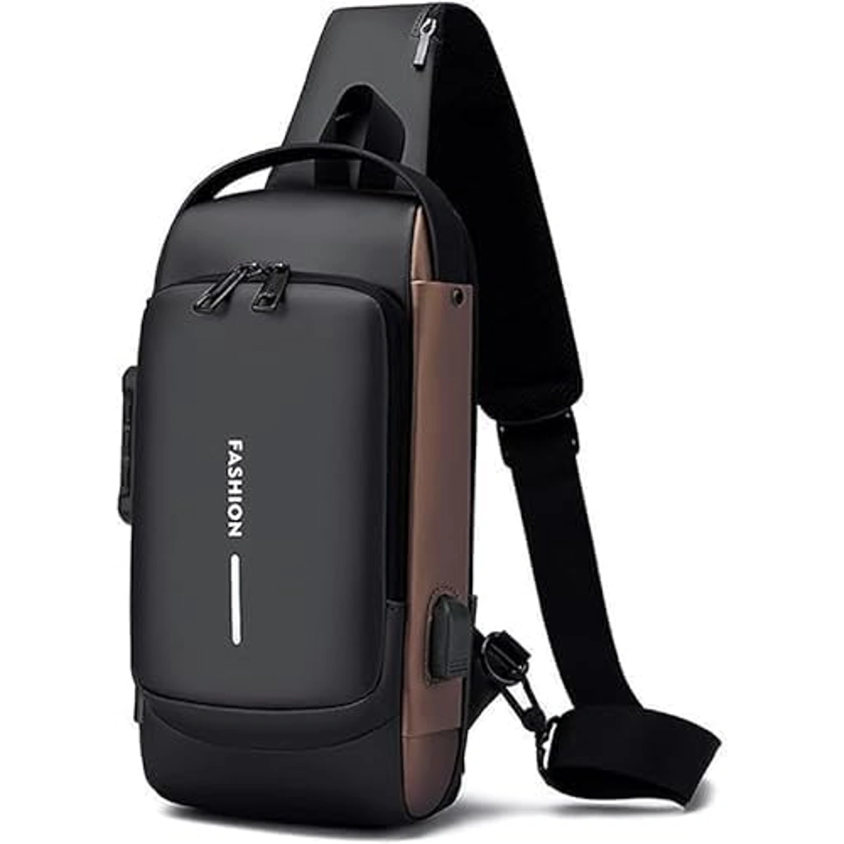 حقيبة كتف كروس مضادة للسرقة بمنفذ USB - رمادي/بني