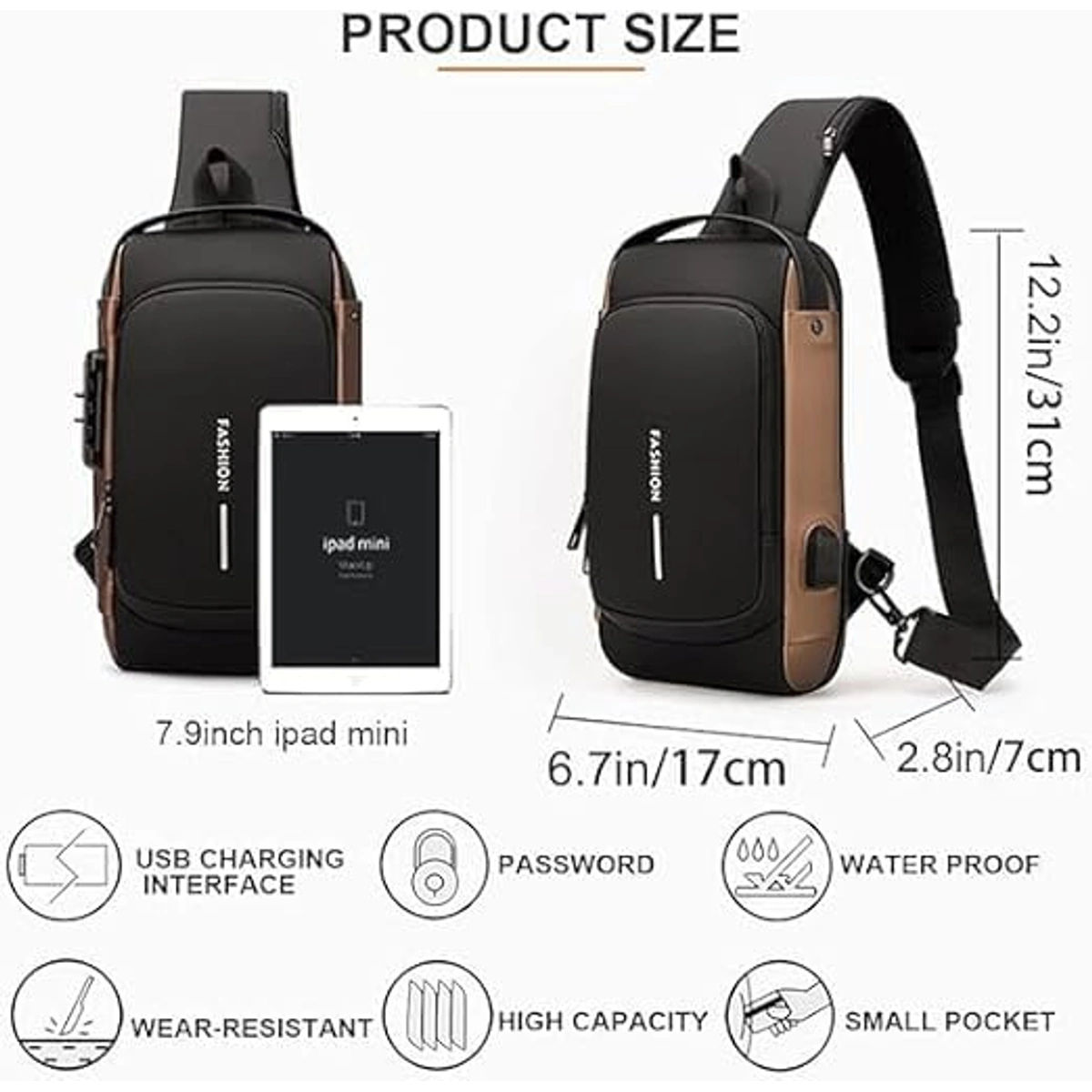 حقيبة كتف كروس عملية بتصميم مضاد للسرقة ومنفذ USB وجيوب متعددة، مناسبة للتنقل اليومي والعمل والسفر.