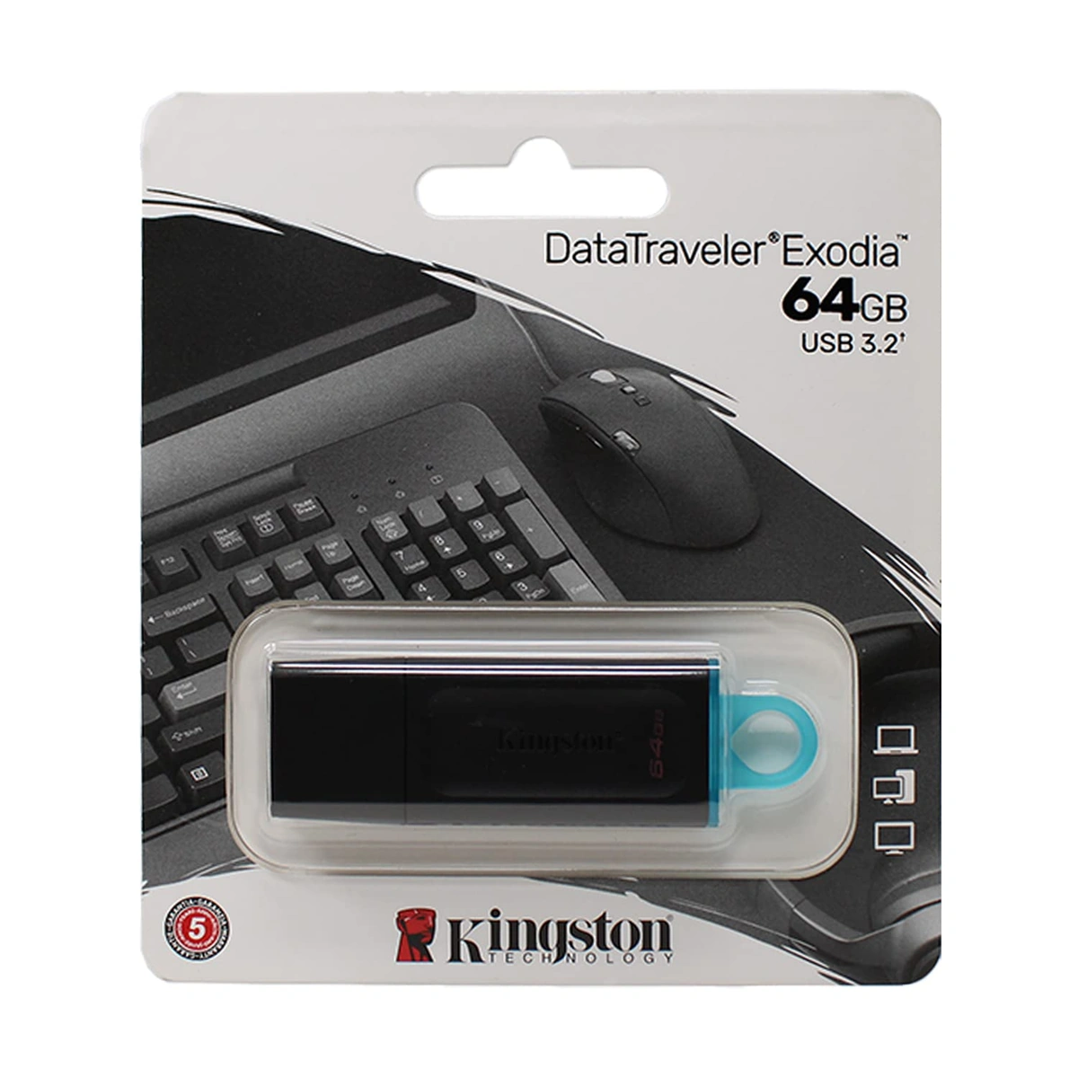 فلاش ميموري اكسوديا من كينجستون بسعة 64 جيجابايت وواجهة USB 3.2 يوفر لك سرعة فائقة في نقل البيانات وتخزين آمن لجميع ملفاتك المهمة بتصميم عملي ومحمول.