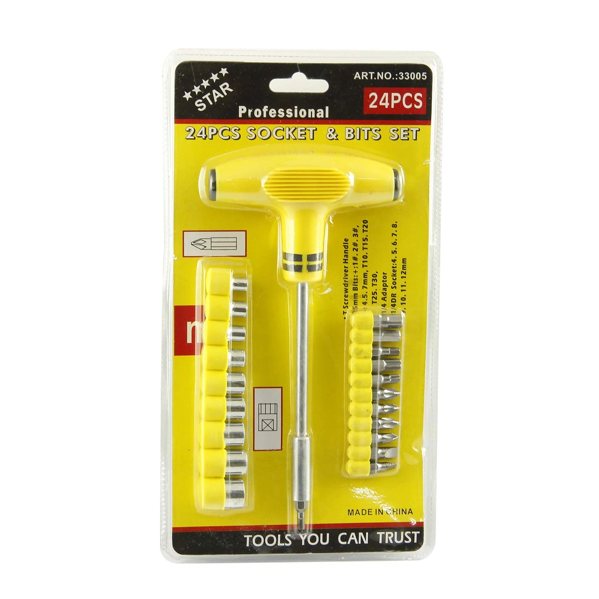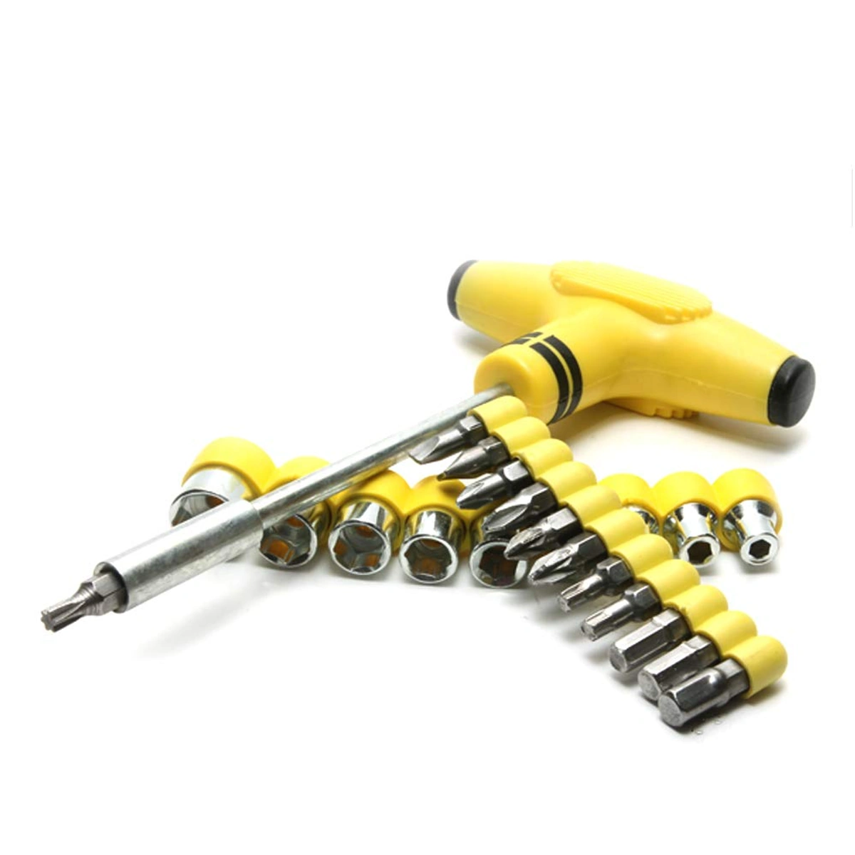 تقدم لكم طقم مفكات حرف T بألوانه الزاهية، حيث يأتي بلون أصفر جذاب ليضفي لمسة من الحيوية على أدواتك. يتميز هذا الطقم الاحترافي من المفكات بأنه يتكون من 24 قطعة متكاملة تشمل مقبض مفك T، مما يجعله مثاليًا لمختلف أعمال الصيانة والتركيب. مصنوع من معدن عالي الجودة، يوفر لك هذا النوع من المفكات durability ومتانة عالية للاستخدام طويل الأمد. يحتوي الطقم على مجموعة متنوعة من البتات، بما في ذلك أحجام 1 #، 2 #، 3 #، 4.5 مم، 7 مم، بالإضافة إلى مفكات بحجم T 10، T 15، T 20، T 25، وT 30، لتلبية جميع احتياجاتك. كما يتضمن الطقم محول كهربائي 1/4 وDR المقبس بأحجام مختلفة من 4 مم حتى 12 مم. اجعل أعمالك أكثر سهولة وفعالية مع طقم مفكات حرف T المتميز!