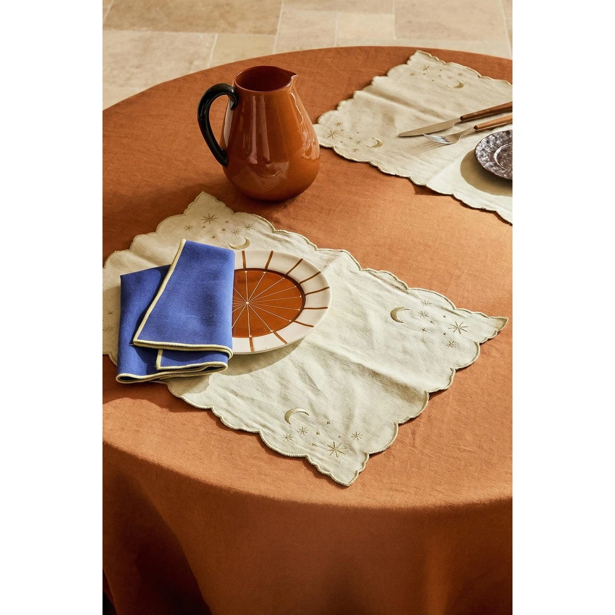 أضف لمسة رمضانية ساحرة لسفرتك مع مفرش كارينا القطني عالي الجودة، بتصميم هلال ونجمة وتطريز أنيق. مثالي لأجواء الشهر الكريم.