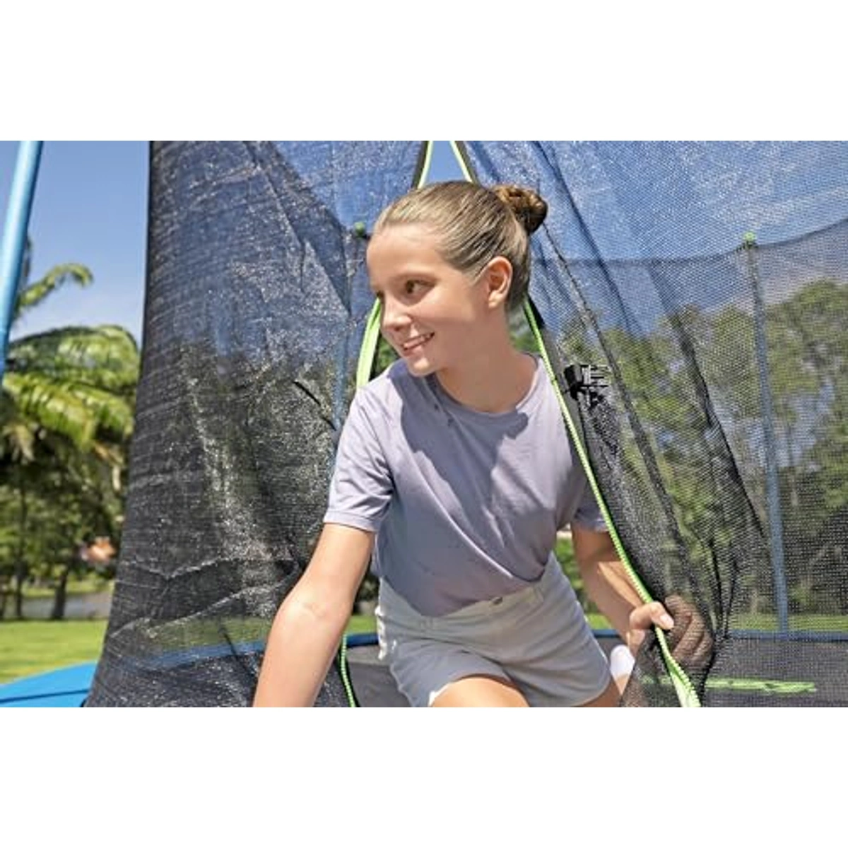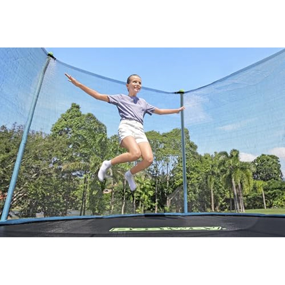 - الأبعاد: قطر 3.66 متر / 12 قدم، أبعاد الترامبولين الكلية: 3.66 × 2.78 متر
