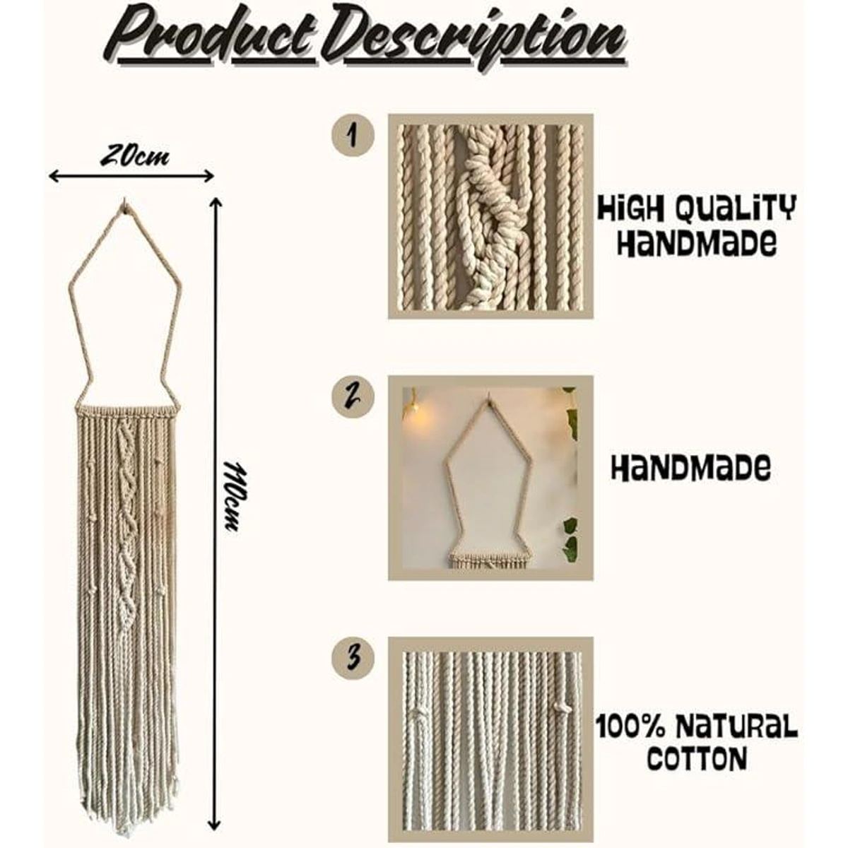 - مكرمية مصنوعة يدويًا: كل قطعة مصممة بحرفية ودقة عالية، مما يضمن لك جودة وتميز لا مثيل لهما.