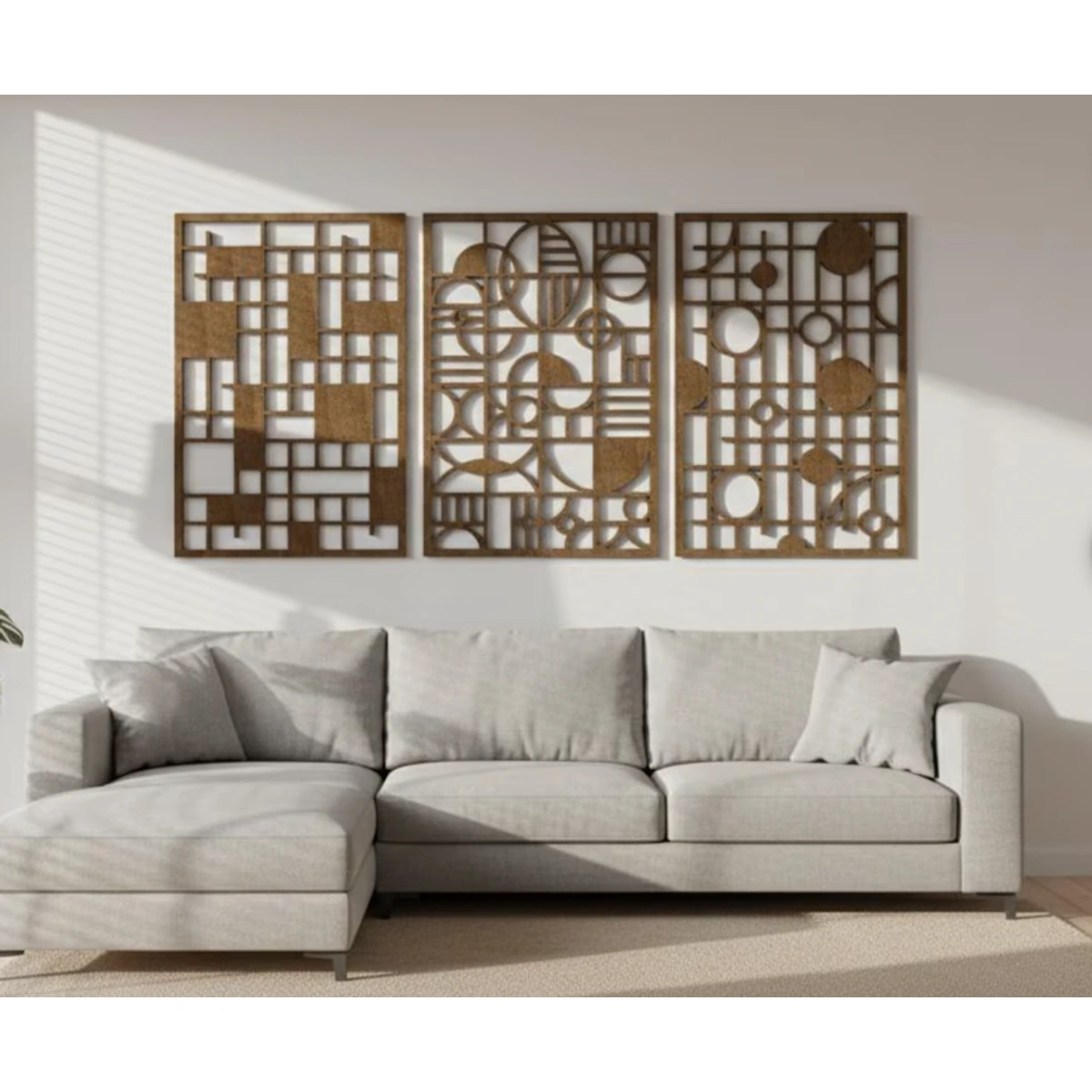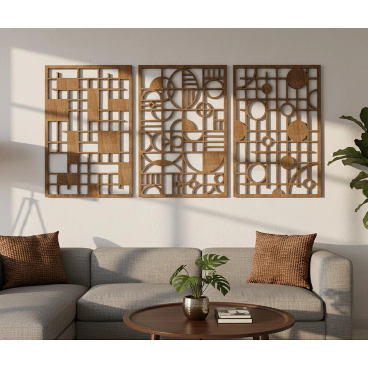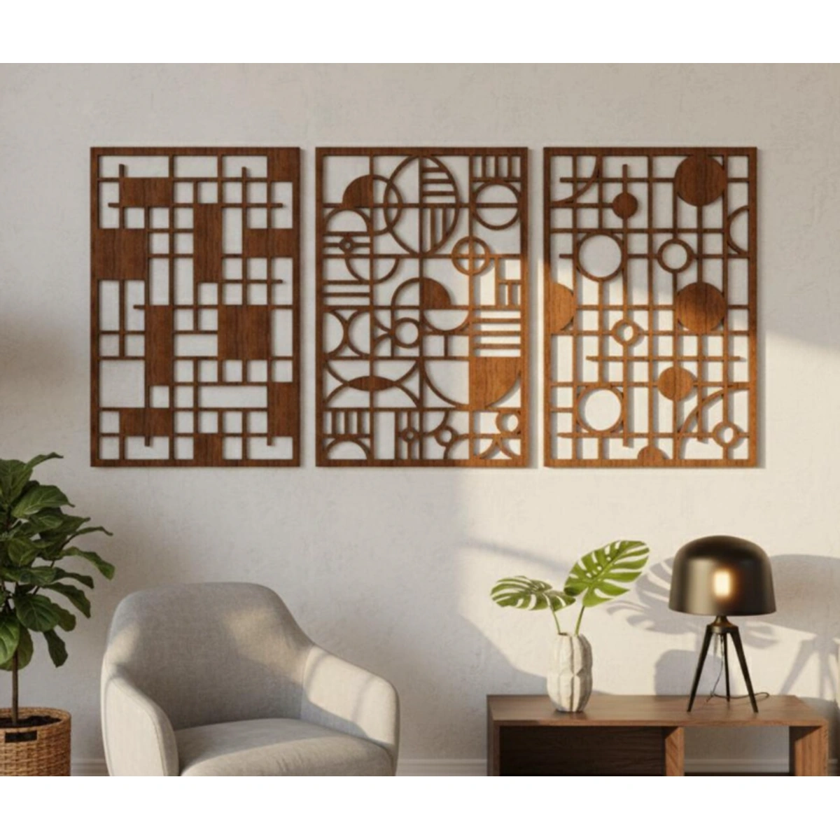 أبرز جمال بيتك مع طقم ألواح الديكور الجداري الخشبي من ATM بتصميمه الهندسي العصري. ثلاث قطع فريدة تضيف لمسة فنية دافئة ومميزة لأي غرفة.