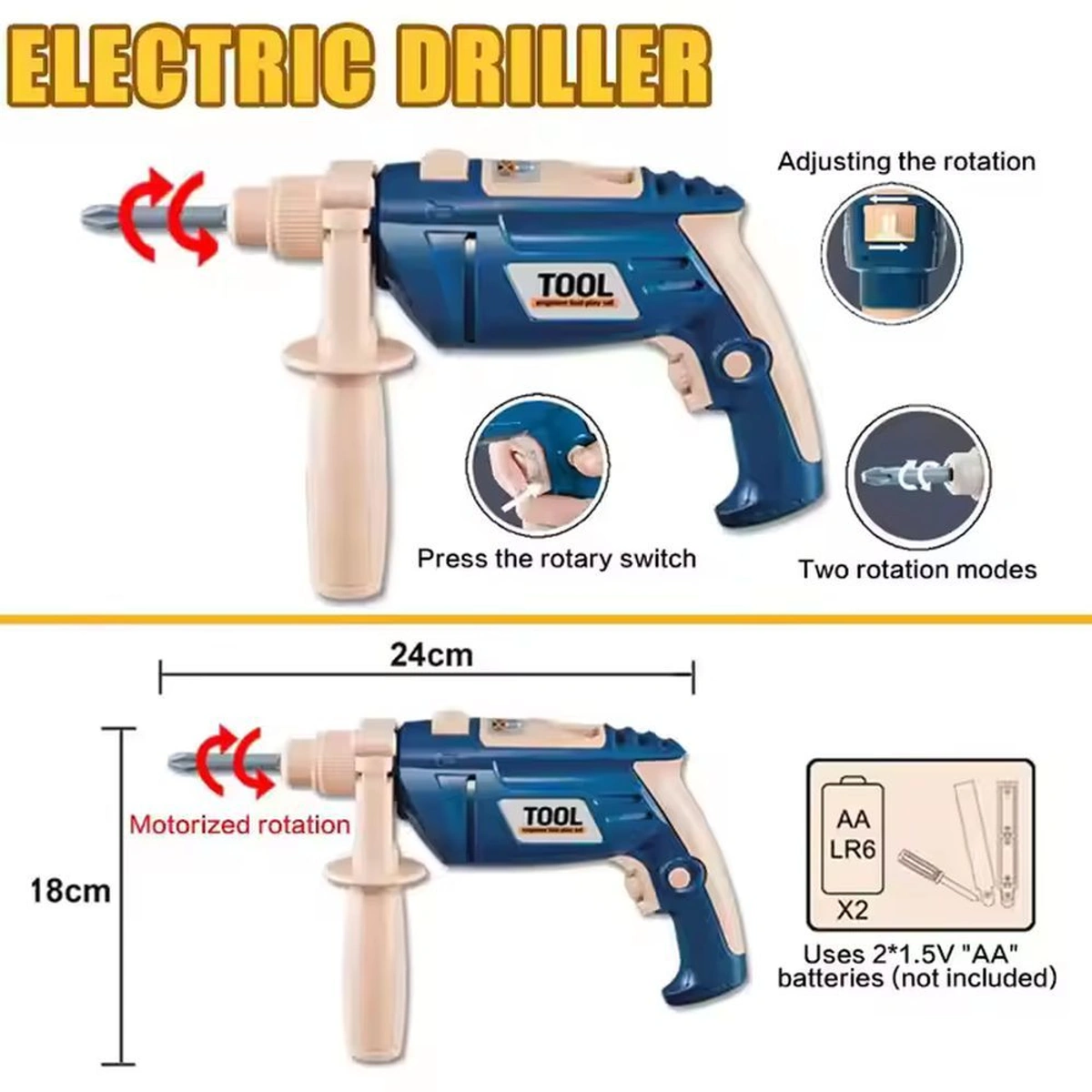 استعدوا لمغامرة مثيرة مع لعبة تجميع الشاحنة مع مجموعة أدوات الحفر الكهربائية - 9905! هذه اللعبة المميزة، التي تأتي بلون أصفر جذاب، مصممة خصيصًا للأولاد في الفئة العمرية من 3 إلى 5 سنوات. تتميز اللعبة بمقاس 28*22 سم، مما يجعلها مناسبة تمامًا ليدين الصغار. تتيح مجموعة البناء هذه للطفل فرصة تجميع شاحنتهم الخاصة، حيث يمكنهم استخدام أداة الحفر الكهربائية المرفقة لربط البراغي وتأمين الأجزاء، تمامًا كما يفعل الميكانيكيون المحترفون. إنها ليست مجرد لعبة، بل وسيلة مثالية لتعزيز الإبداع وتنمية المهارات الحركية الدقيقة، مما يساعد الأطفال على فهم الميكانيكا الأساسية بطريقة ممتعة وتفاعلية. لا تفوتوا الفرصة لإدخال البهجة إلى عالم أطفالكم مع هذه اللعبة الفريدة، التي تعمل على بطاريتين 1.5V AA، واستمتعوا بوقت ممتع ومفيد في آن واحد!