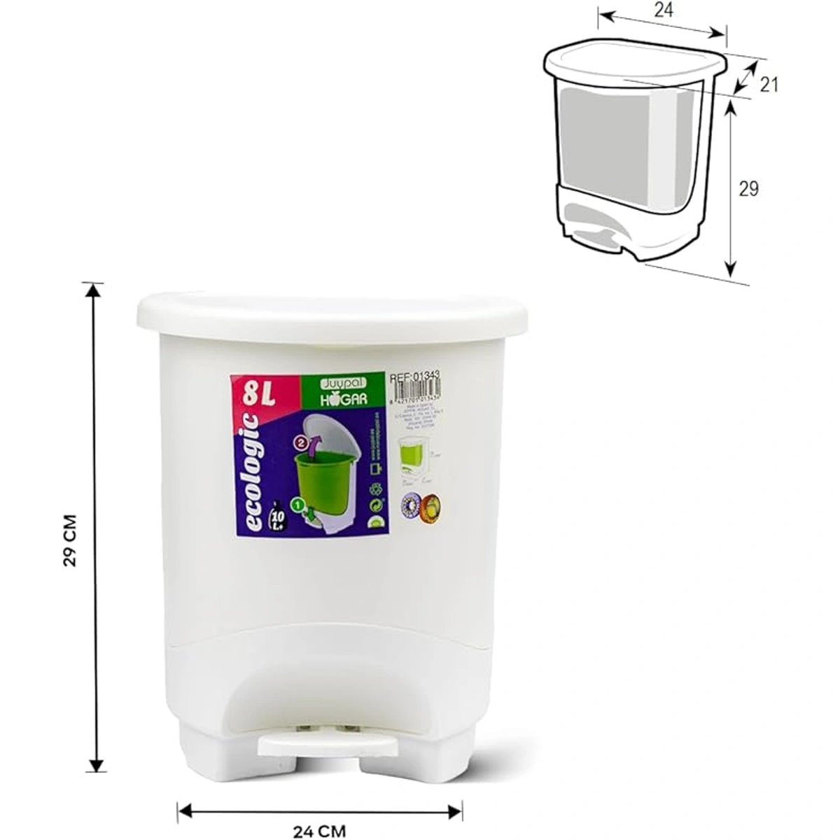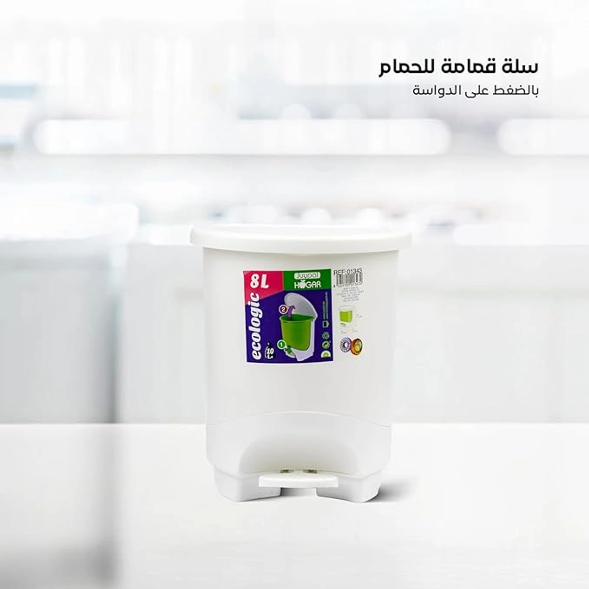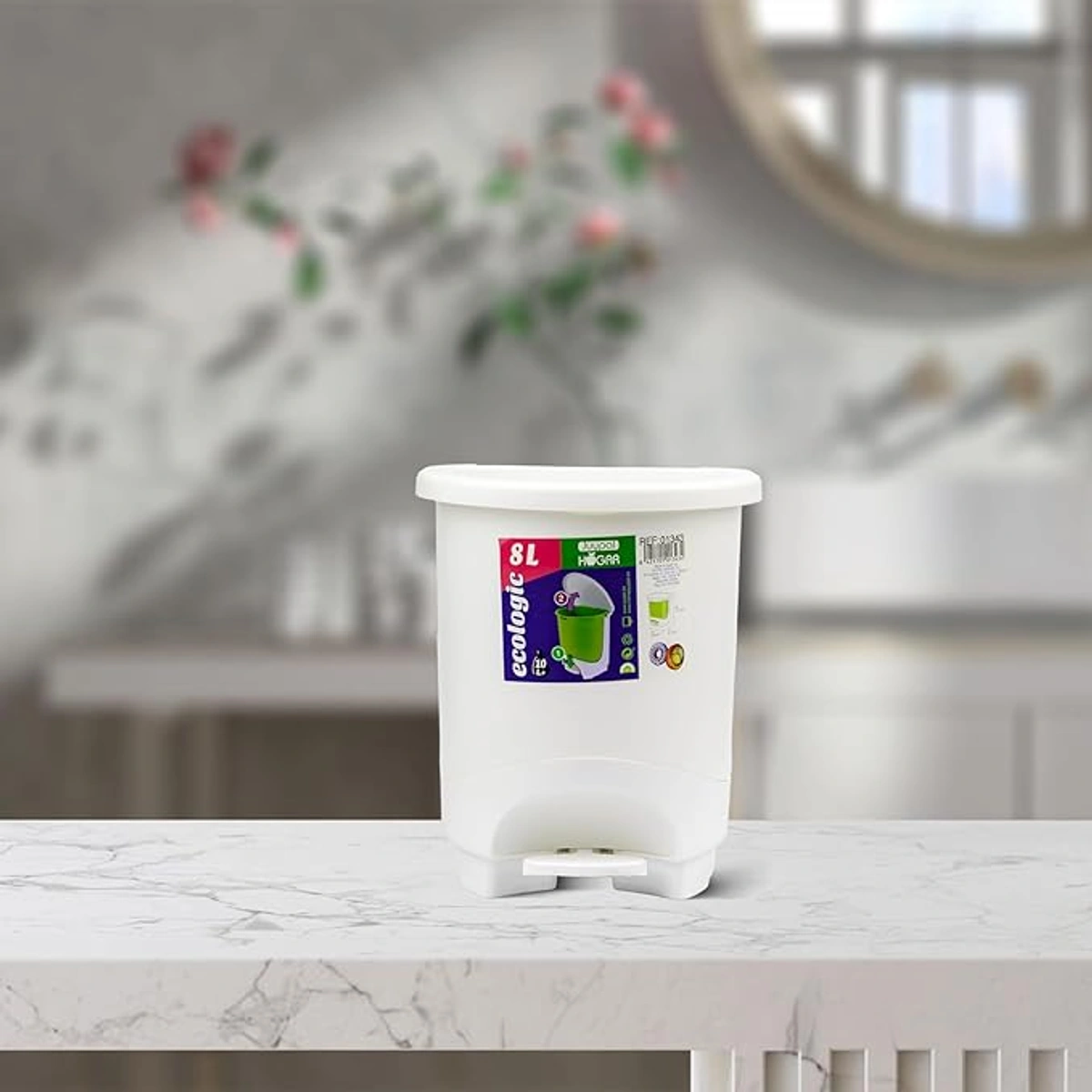سلة مهملات بدواسة - أبيض - 8 لتر