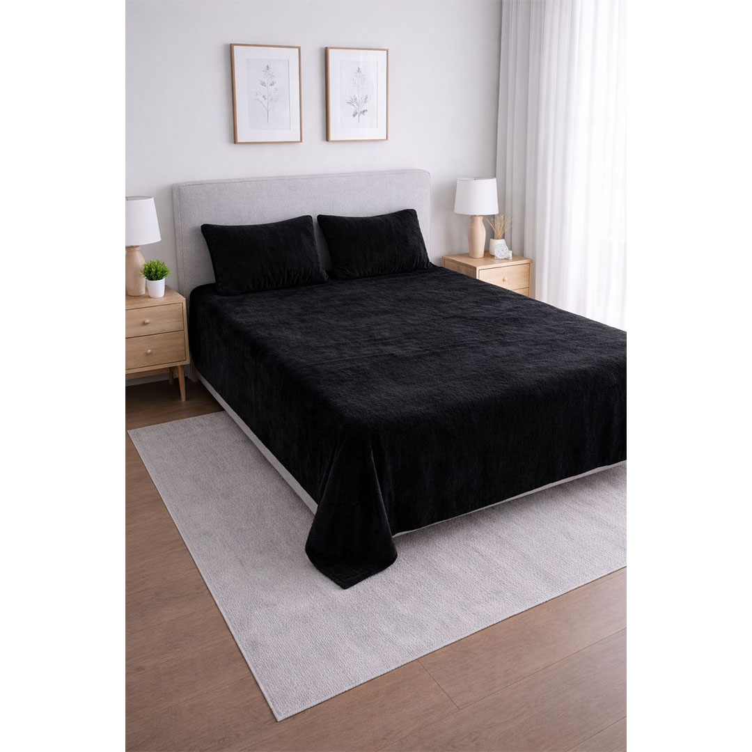 مميزات ومواصفات يارلن طقم ملاية قطيفة عادية + 2 كيس مخدة 50×70 سم 160×200 سم - أسود