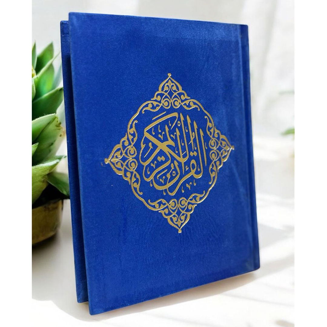 مصحف القرآن الكريم مغلف بغلاف قطيفة أزرق 15×11 سم، مصحف أنيق بحجم عملي يسهل حمله، غلاف قطيفة ناعم يضيف له لمسة فخامة، حروف واضحة وورق بجودة عالية لقراءة مريحة، مناسب للاستخدام الشخصي أو كهدية إسلامية قيمة.