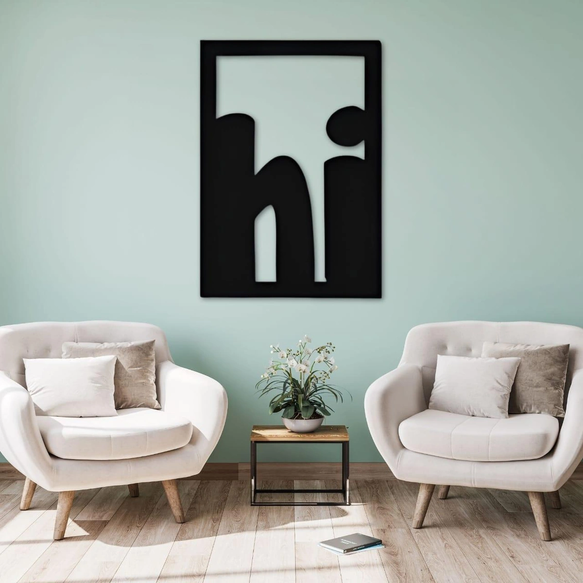 - فن حائط خشبي حديث: زين مساحتك بكلمة "hi" بتصميم فني عصري يترك انطباعًا ودودًا.