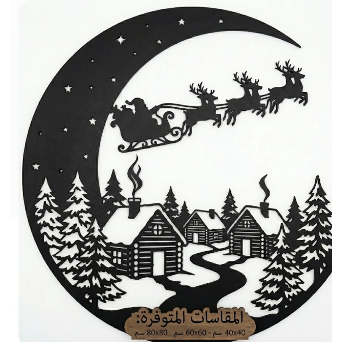 - التصميم: شكل سانتا مع هلال، مزلاج، رنة، وأجواء قرية ساحرة، أكواخ مغطاة بالثلوج، أشجار دائمة الخضرة، ونجوم متلألئة.
