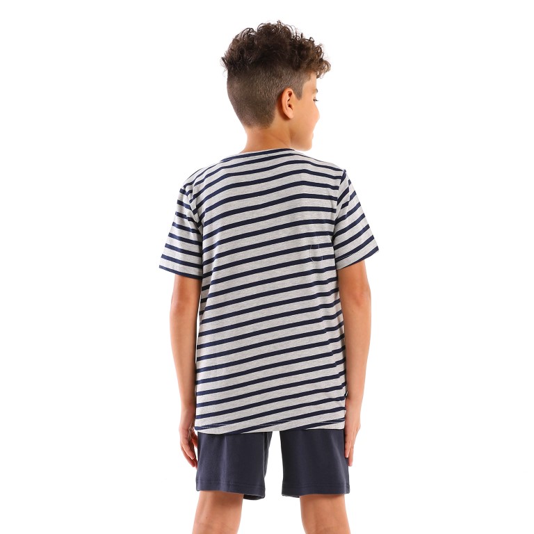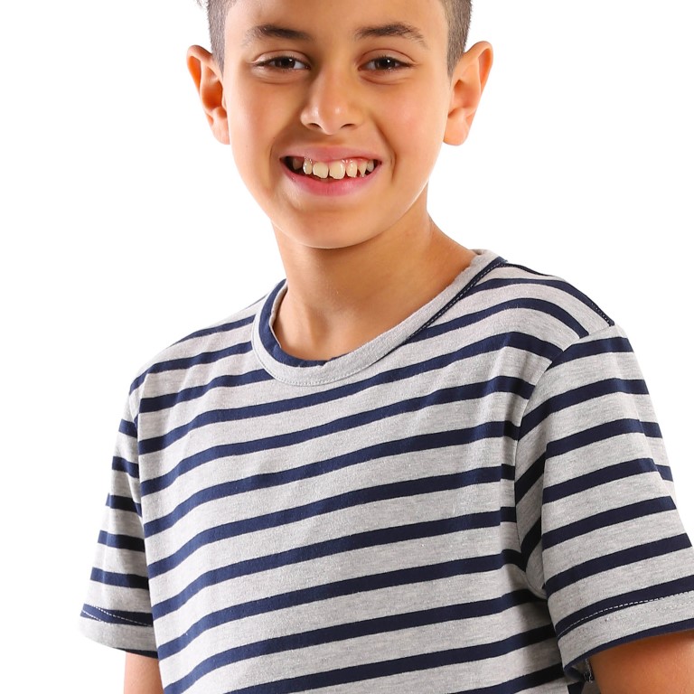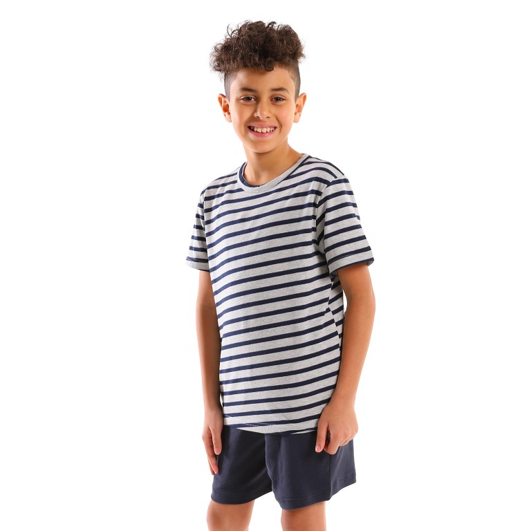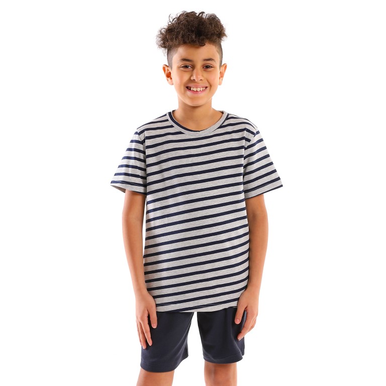 بيجامة اولادي مخططه - كحلي/رمادي