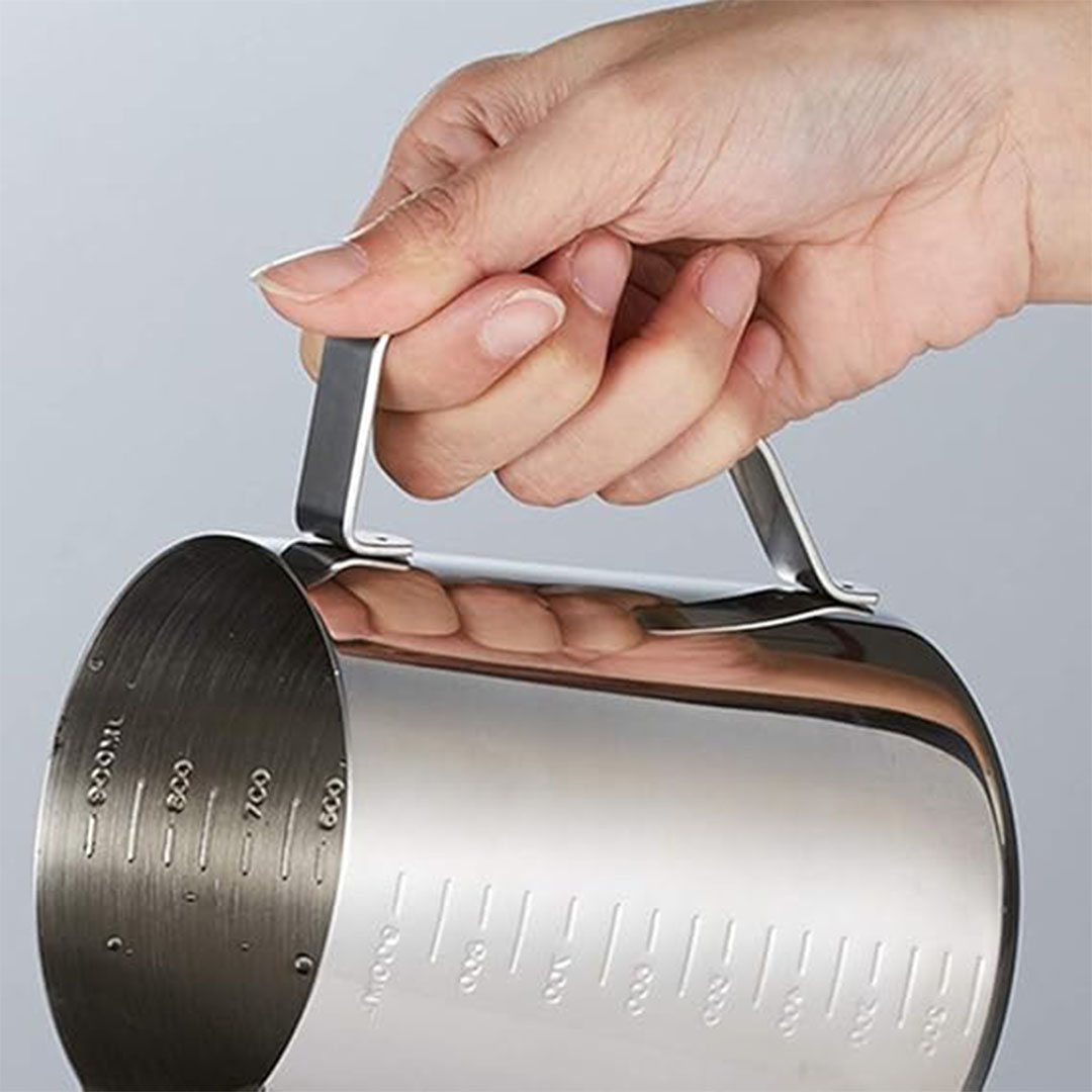 - قياسات دقيقة: يحتوي على مقاييس كمية على كلا الجانبين لضمان التحكم الكامل في كمية الحليب أو الكريمة المناسبة لكل كوب قهوة.