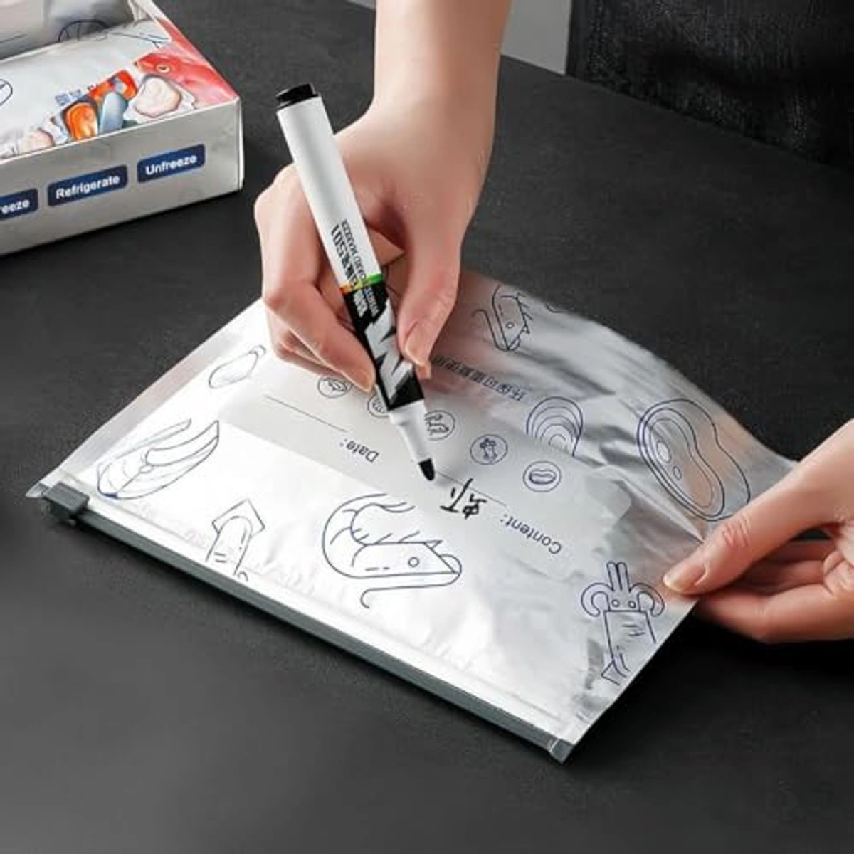 تقدم أكياس تخزين الفريزر المصنوعة من رقائق الألومنيوم الجودة العالية والعملية المثالية لتخزين الأطعمة، حيث تأتي بحجم 29 × 26 سم وتحتوي على 10 قطع شفافة، مما يسهل رؤية المحتويات بوضوح. تتميز هذه الأكياس بوجود سوستة مانعة للتسرب، مما يساعد على الحفاظ على نضارة اللحوم والخضروات لفترة أطول، كما أنها قابلة لإعادة الاستخدام، مما يسهم في تقليل النفايات ويحافظ على البيئة. تعتبر هذه الأكياس الخيار الأمثل لكل من يبحث عن وسيلة فعالة وآمنة لتخزين الأطعمة في الفريزر.