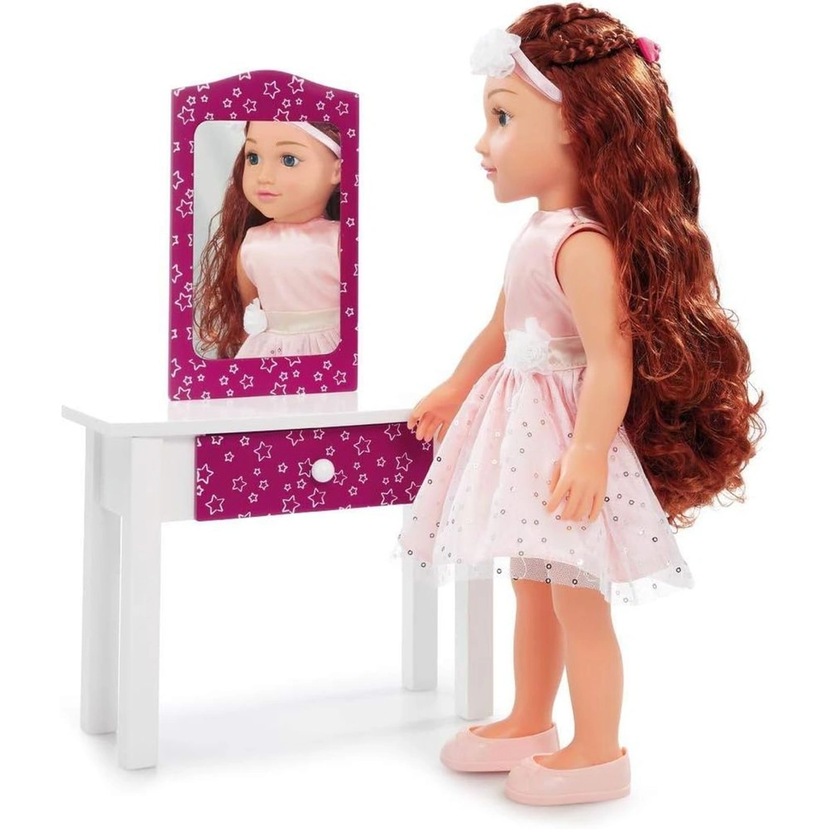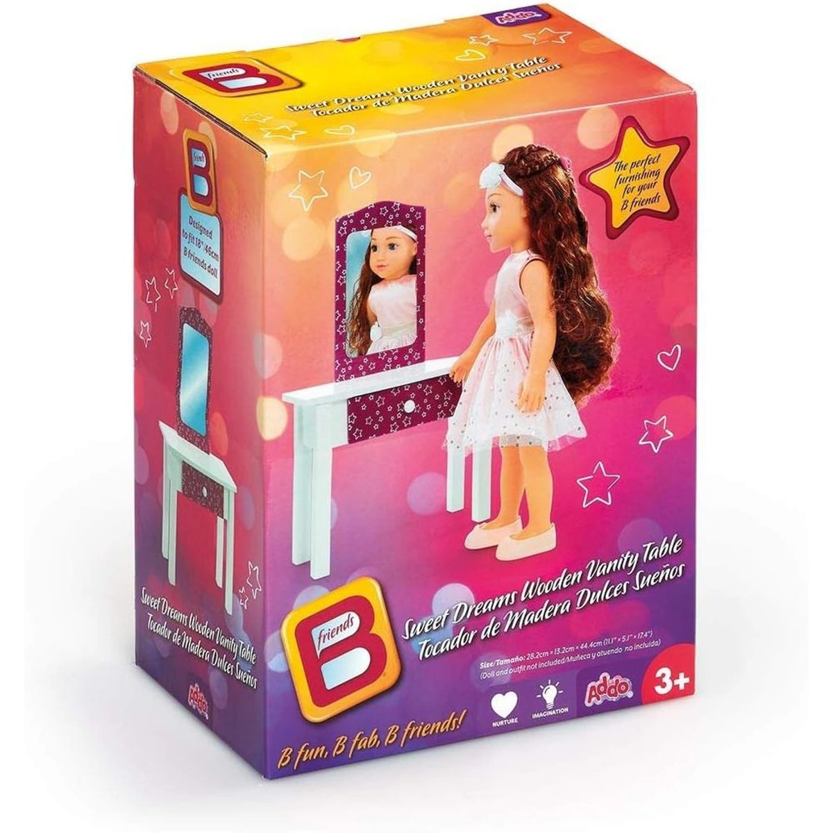 عروسة الصديقة مع طاولة تزيين خشبية هي لعبة مثالية للأطفال من عمر 3 إلى 5 سنوات، حيث تأتي بلون أبيض رائع وتصميم جذاب يثير خيالهم. يبلغ طول العروسة 46 سم، وتضم مجموعة من الإكسسوارات الجميلة التي تعزز تجربة اللعب والتزيين. تعتبر هذه اللعبة مثالية لتعزيز اللعب التخيلي، حيث تشجع الأطفال على تمثيل الأدوار والتفاعل مع البيئة المحيطة بهم بطريقة ممتعة ومبتكرة، مما يساعد في تطوير مهاراتهم الاجتماعية والإبداعية.