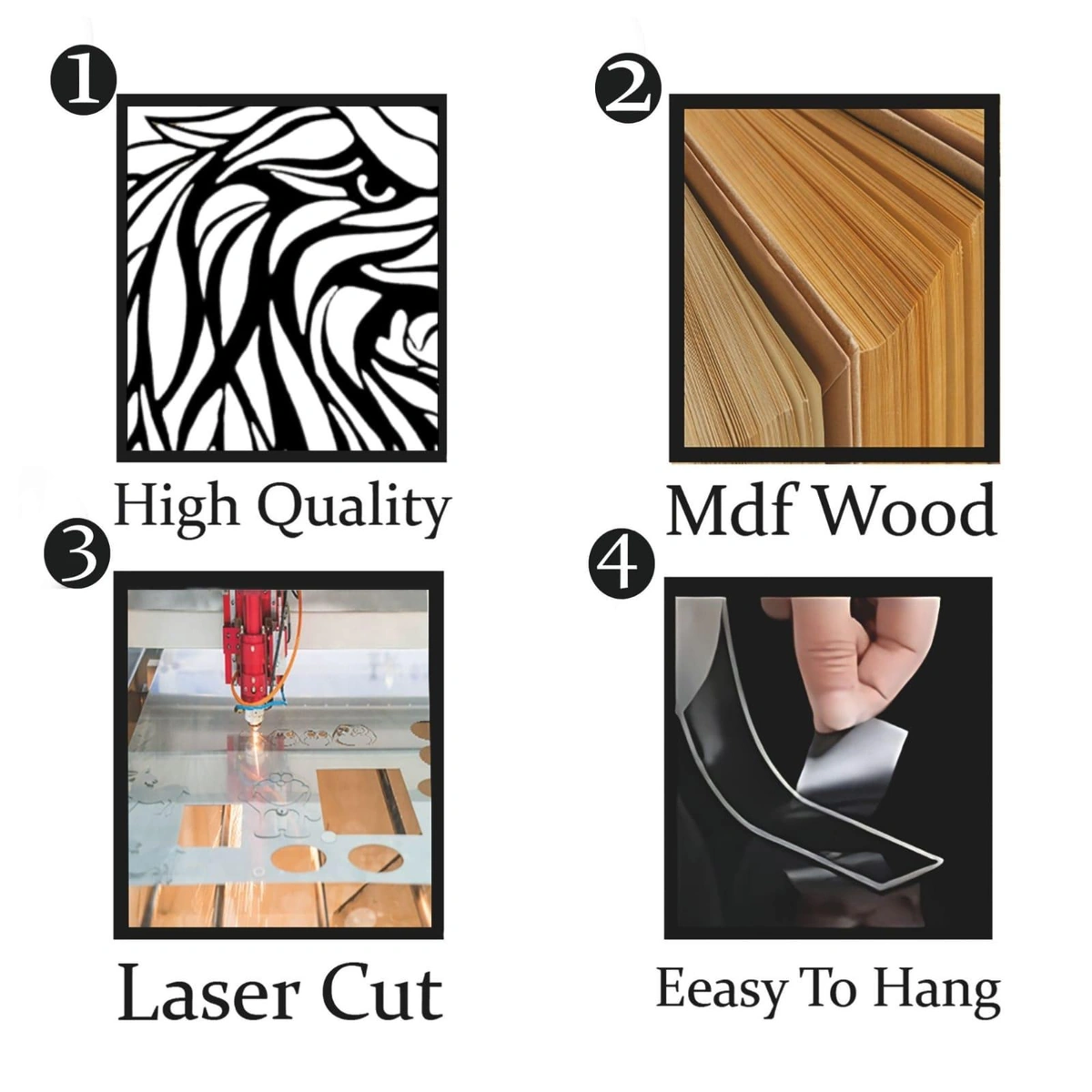 أضف لمسة من القوة والفخامة لديكور منزلك أو مكتبك مع لوحة جدارية ATM بتصميم رأس نسر منحوت بالليزر. قطعة فنية فريدة مصنوعة من خشب MDF عالي الجودة باللون الأسود الأنيق.