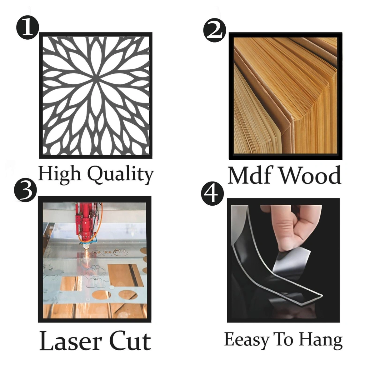 - صناعة متقنة: مصنوعة من خشب MDF عالي الجودة، مقصوصة بتقنية الليزر المتقدمة لخلق تفاصيل دقيقة وحواف ناعمة.