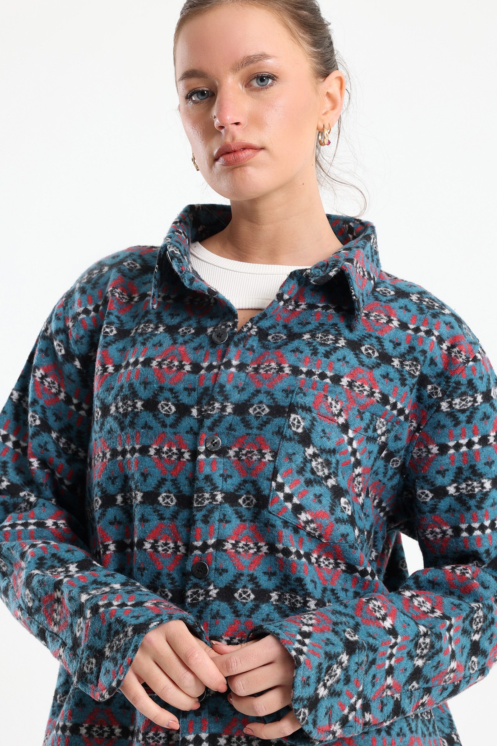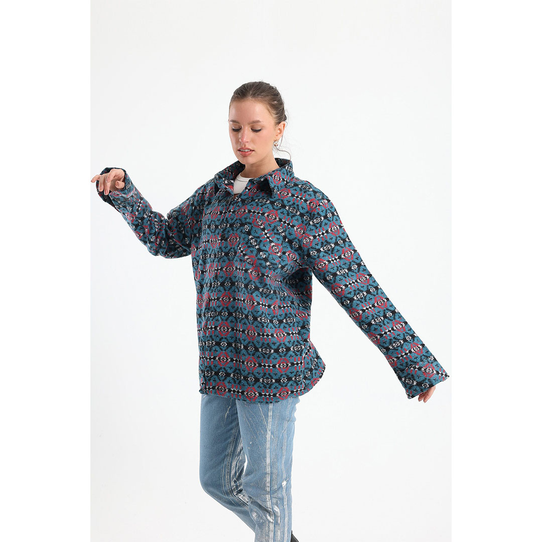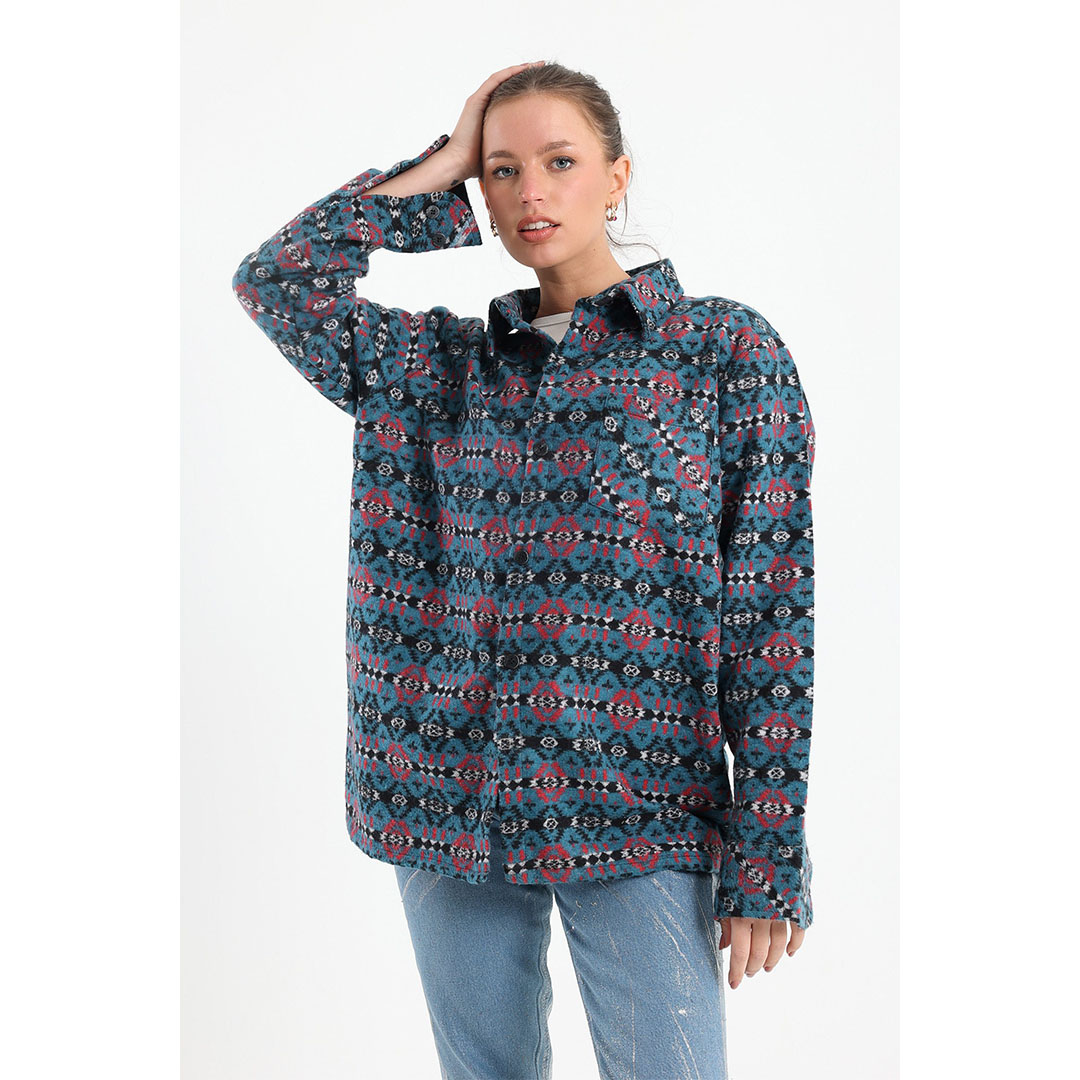 قميص كاجوال شتوي حريمي - أزرق/أسود