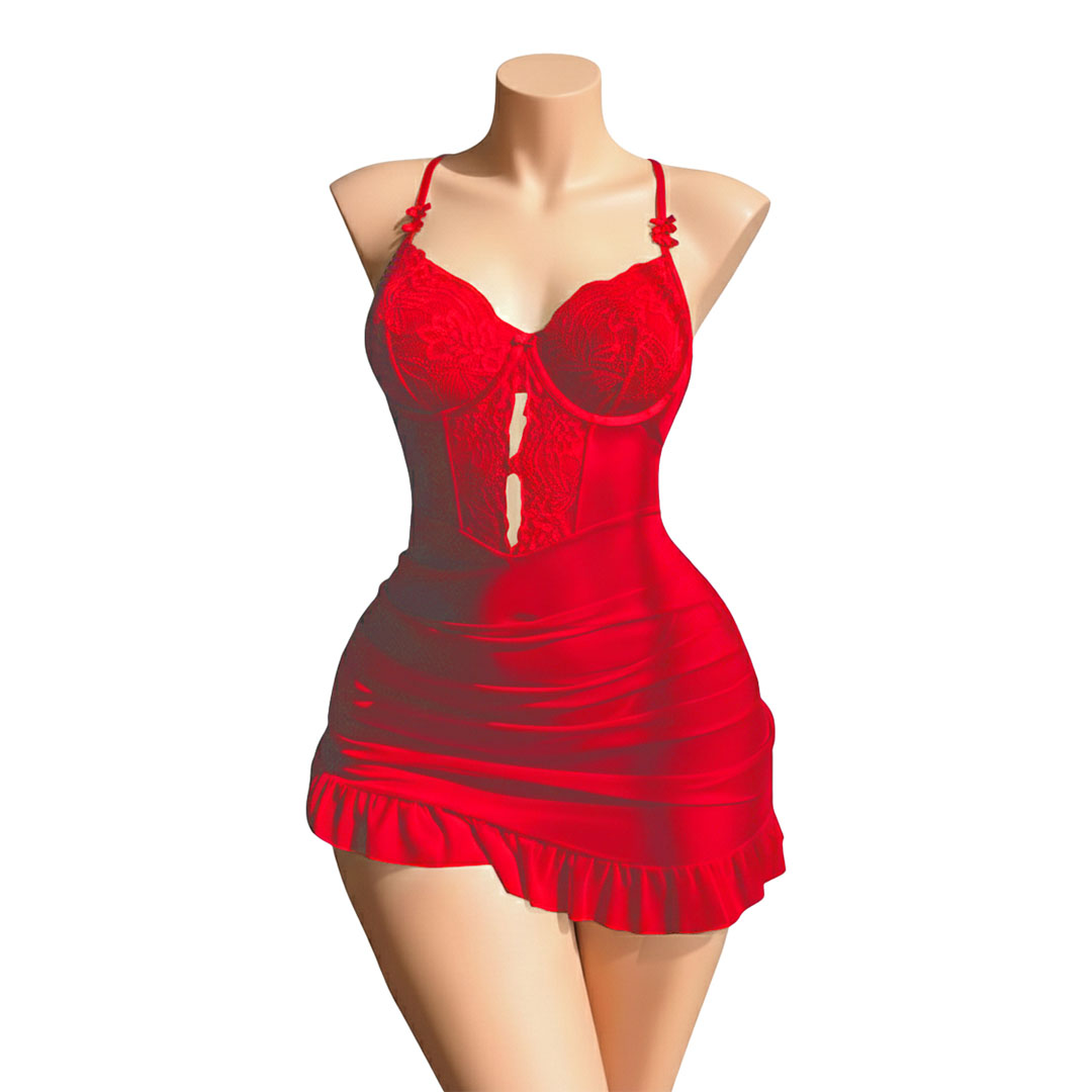قميص نوم قصير ستان مع دانتيل بفيونكة - 277