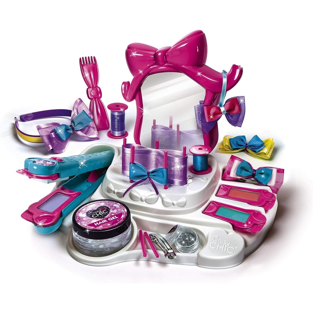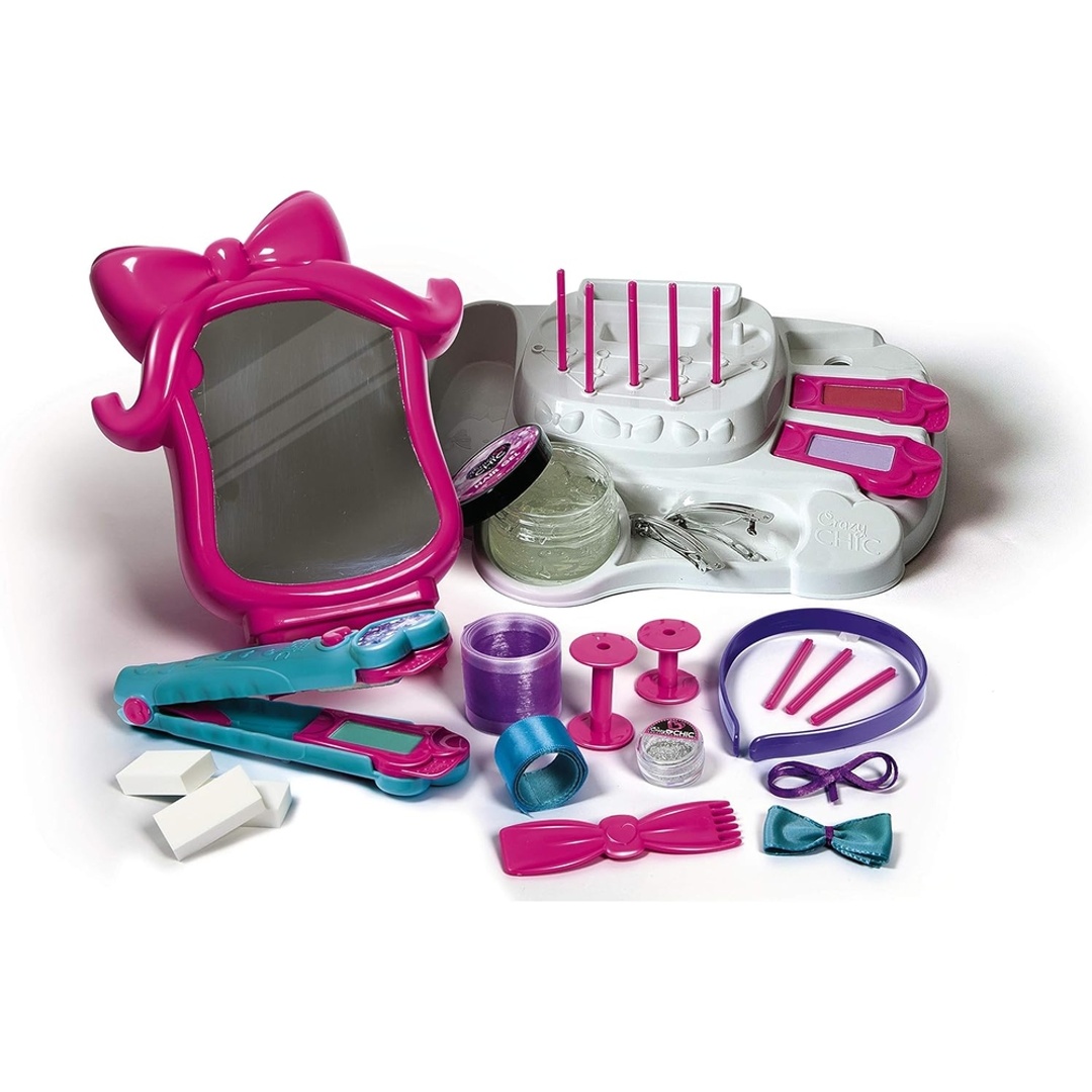 - يحتوي على العديد من الإكسسوارات مثل الفيونكات الملونة وعصابات الرأس ودبابيس الشعر