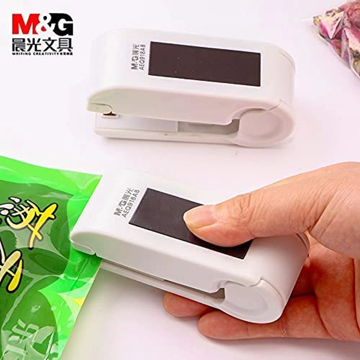 حافظ على طعامك طازجًا ومحميًا بسهولة مع ماكينة إغلاق M&G الحرارية اليدوية الصغيرة. تصميم متعدد الألوان ومحمول يجعلها مثالية لكل مكان.
