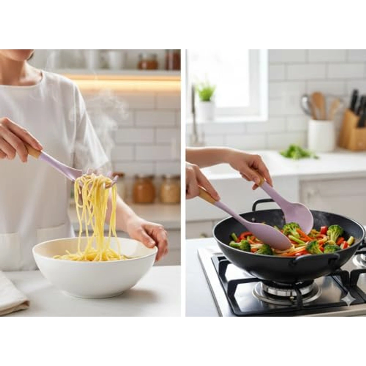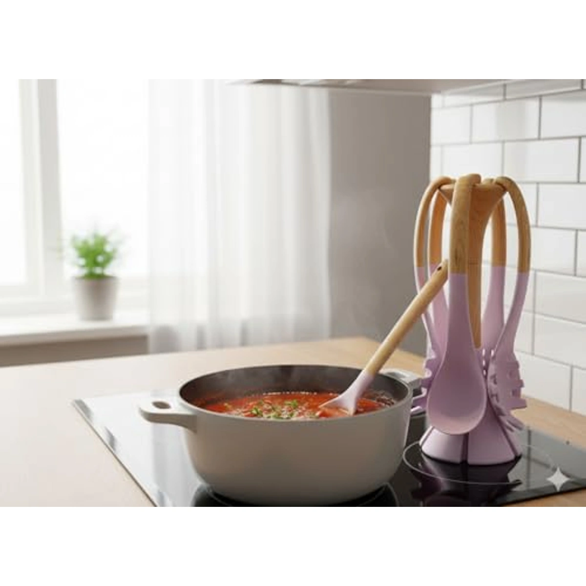 اكتشف طقم أدوات المطبخ المثالي الذي يجمع بين الأناقة والوظائف العالية، حيث يتكون هذا الطقم من 6 قطع مصنوعة من السيليكون مع مقابض خشبية طبيعية، ليمنحك تجربة طهي مريحة وآمنة. يأتي الطقم بتصميم عصري بلون أبيض مع رؤوس جرانيت بلون أرجواني، مما يضيف لمسة جمالية لمطبخك. تتميز رؤوس السيليكون بمقاومتها العالية للحرارة، مما يسمح لك باستخدامها مع جميع أنواع الأواني دون القلق من تلفها. بالإضافة إلى ذلك، فإن التصميم المزدوج المواد يوفر لك أدوات متعددة الاستخدامات، مما يسهل عليك إنجاز مهام الطهي المختلفة بكفاءة. مع ارتفاع حامل الطقم الذي يصل إلى 40 سم، ستجد أن تنظيم أدواتك أصبح أكثر سهولة وأناقة. اجعل تجربة الطهي لديك أكثر متعة واحترافية مع هذا الطقم الرائع!