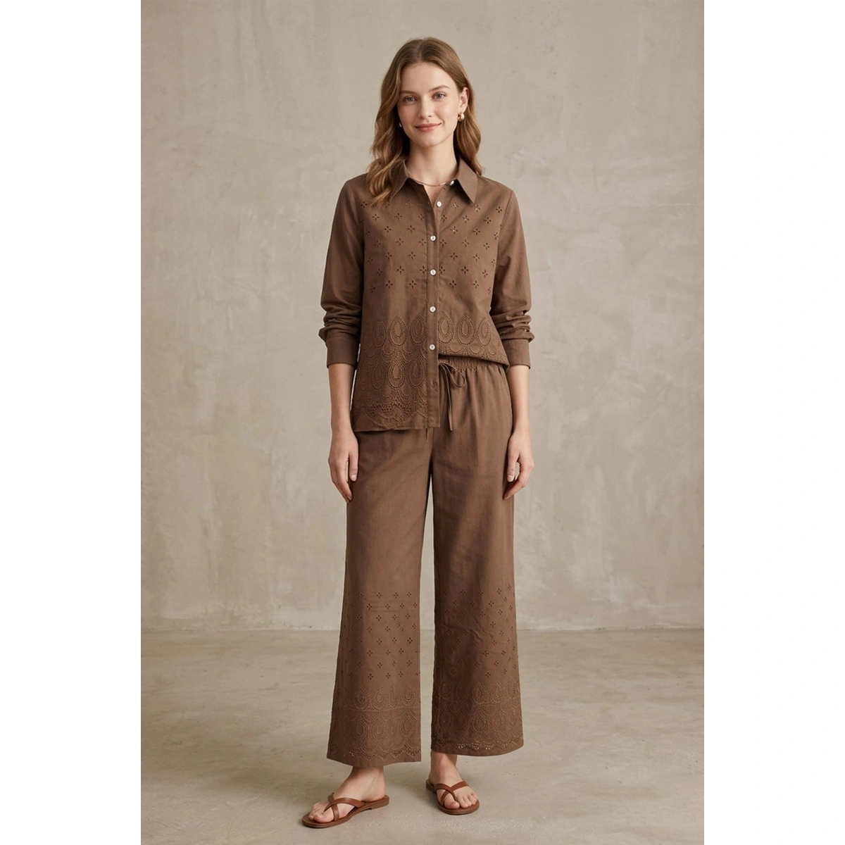 بنطلون حريمي مريح برجل واسعة من كلو - بني غامق