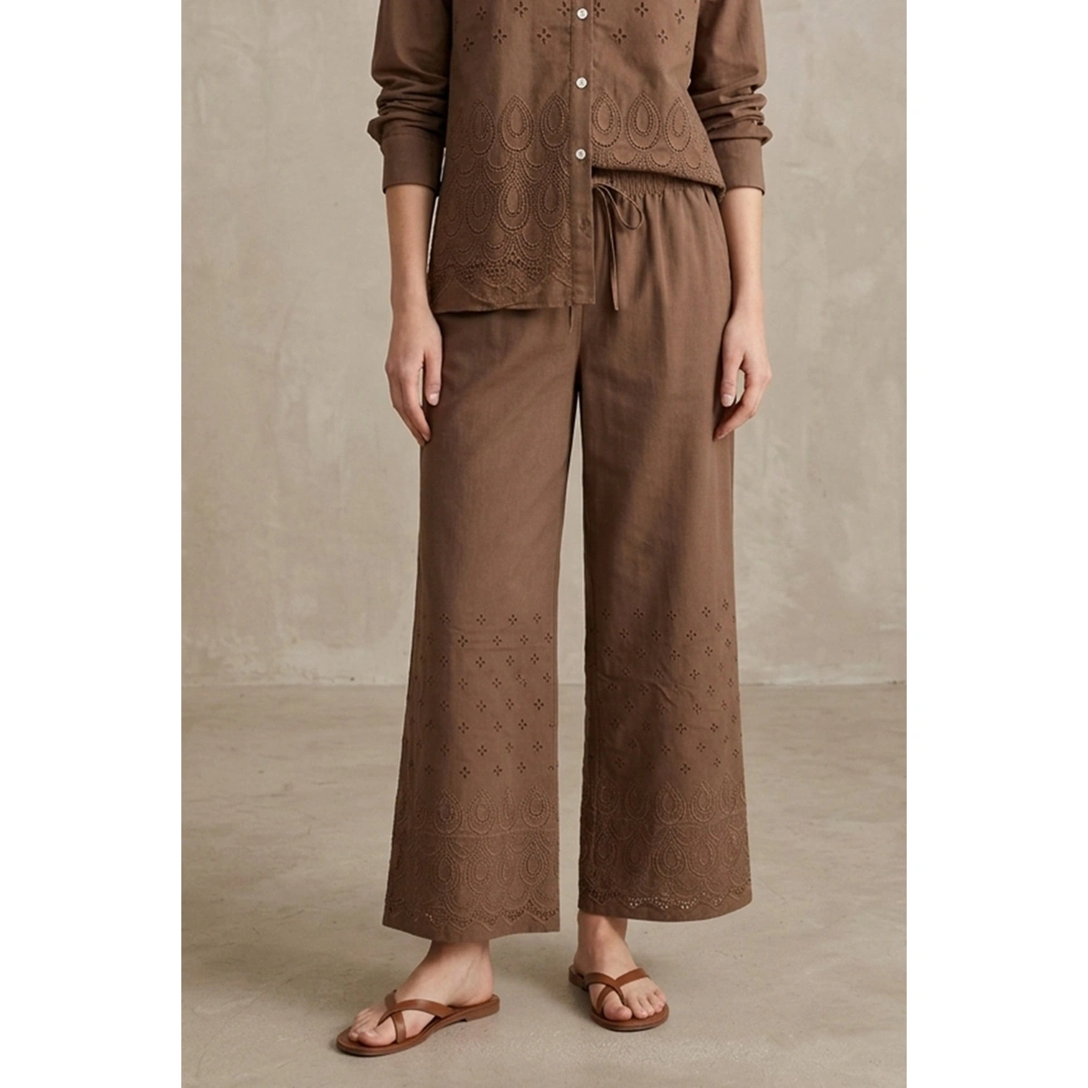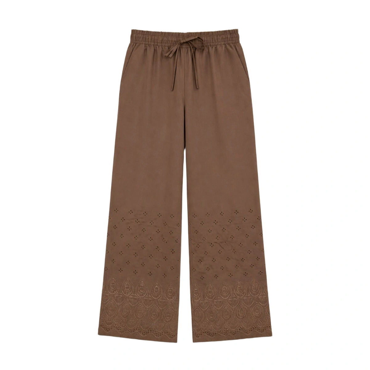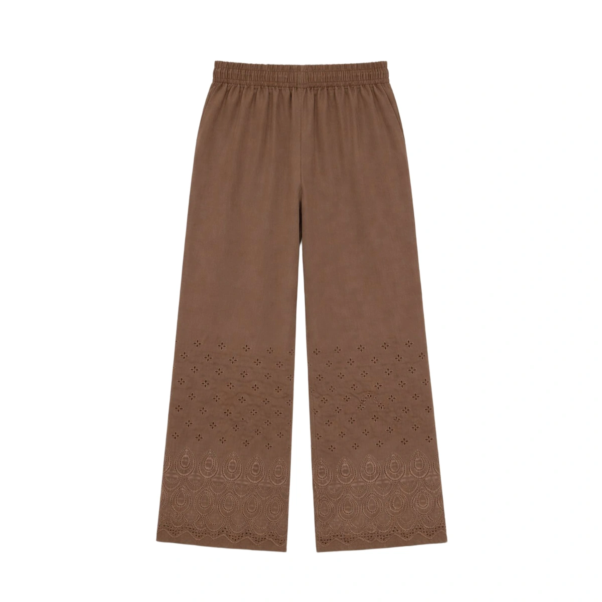 بنطلون مطرز بفتحات من كلو - بني غامق
