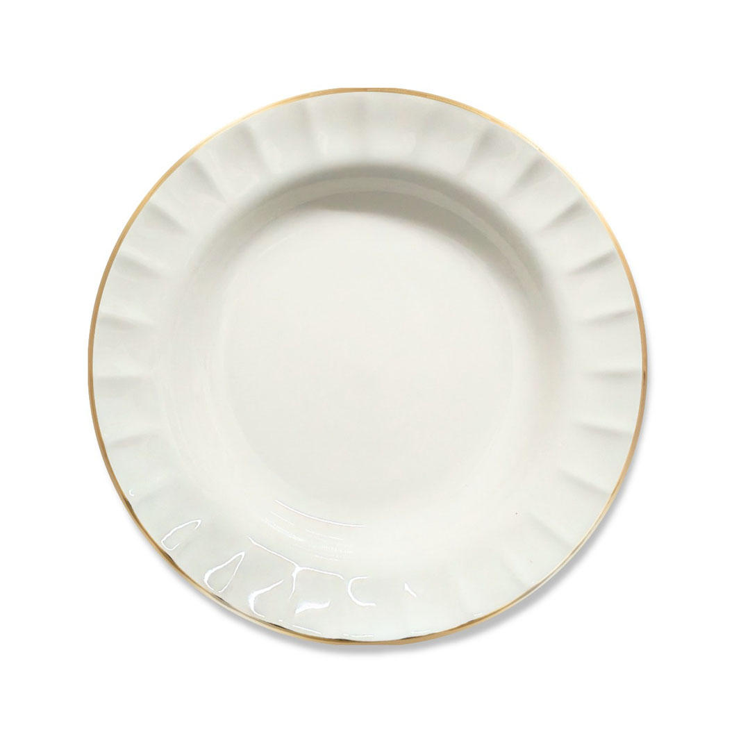طبق عشا بورسلين ديليسيا مموج بحواف ذهبية - 21 سم - أبيض