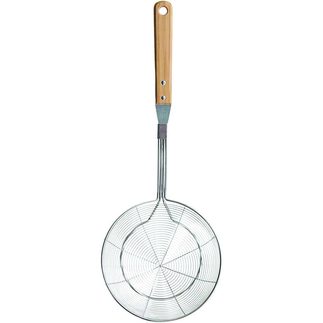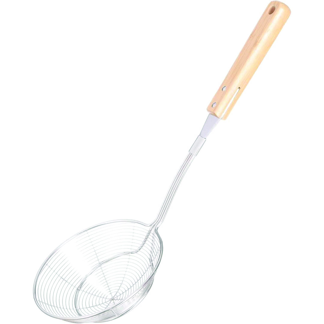 صفاية ستانلس ستيل بيد خشب عملية ومثالية لتصفية الطعام بشكل احترافي مصفاة ستانلس مقاومة للصدأ تناسب غسل الفواكه والخضروات وتصفيتها يد خشبية مريحة للاستخدام تصميم عملي للغسيل اليومي وأدوات المطبخ الحديثة