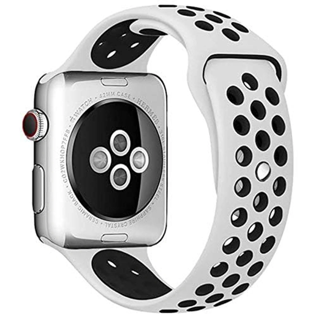 سوار سيليكون لساعة Apple - أسود /أبيض اجمع بين الأناقة والراحة مع سوار سيليكون لساعة Apple، تصميم مميز باللونين الأسود والأبيض، خامة ناعمة مقاومة للتعرق، ثبات قوي وسهولة في التركيب، مناسب للاستخدام اليومي والرياضي.