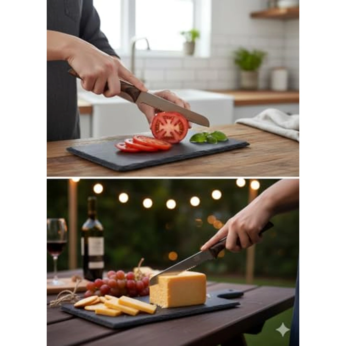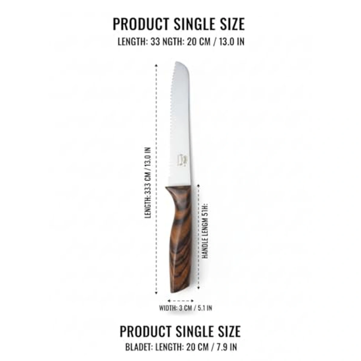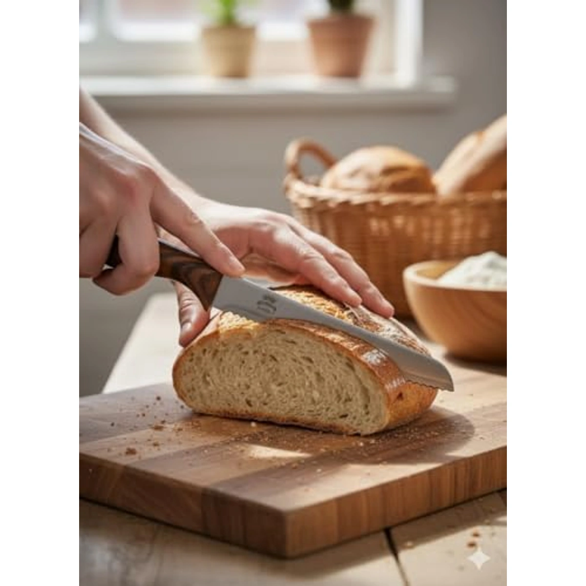 تقدم لكم سكين الخبز المصنوعة من الستانلس ستيل، الاختيار المثالي لتحضير الخبز بكل سهولة ودقة. تتميز هذه السكين التي يبلغ طول نصلها 15 سنتيمتر بحافة مسننة تضمن قطعًا نظيفًا وسهلًا لجميع أنواع الخبز، سواء كان خبزًا قاسيًا أو طريًا. يأتي هذا المنتج بلون فضي أنيق لشفرتها، في حين يتميز مقبضها الخشبي بلون طبيعي جميل يضيف لمسة من الأناقة إلى أدوات المطبخ الخاصة بك. بطول إجمالي يبلغ 33 سنتيمتر، تعد سكين الخبز هذه مريحة في الاستخدام وتحقق توازنًا مثاليًا بين الأداء والجمالية. يجب الانتباه إلى أنه لا يمكن غسل هذه السكين في غسالة الأطباق، لذا يُفضل غسلها يدويًا للحفاظ على جودتها وأدائها. اجعل من تجربة خبزك أكثر احترافية مع سكين الخبز ذات التصميم الفريد والعملي!