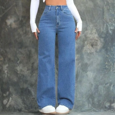 بنطلون جينز حريمي واسع الأرجل - أزرق فاتح